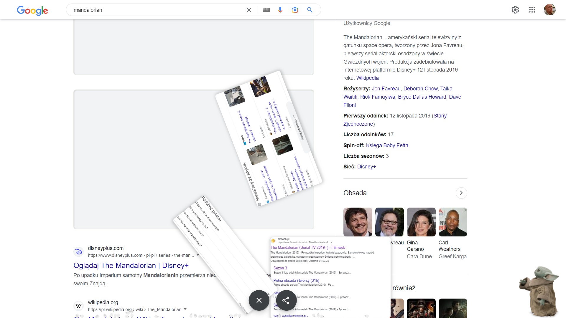 Wpiszcie w wyszukiwarkę google Grogu lub Mandalorian, po chwili, oprócz wyników pojawi się Grogu i po kliknięciu na niego zacznie robić bałagan w wynikach wyszukiwania