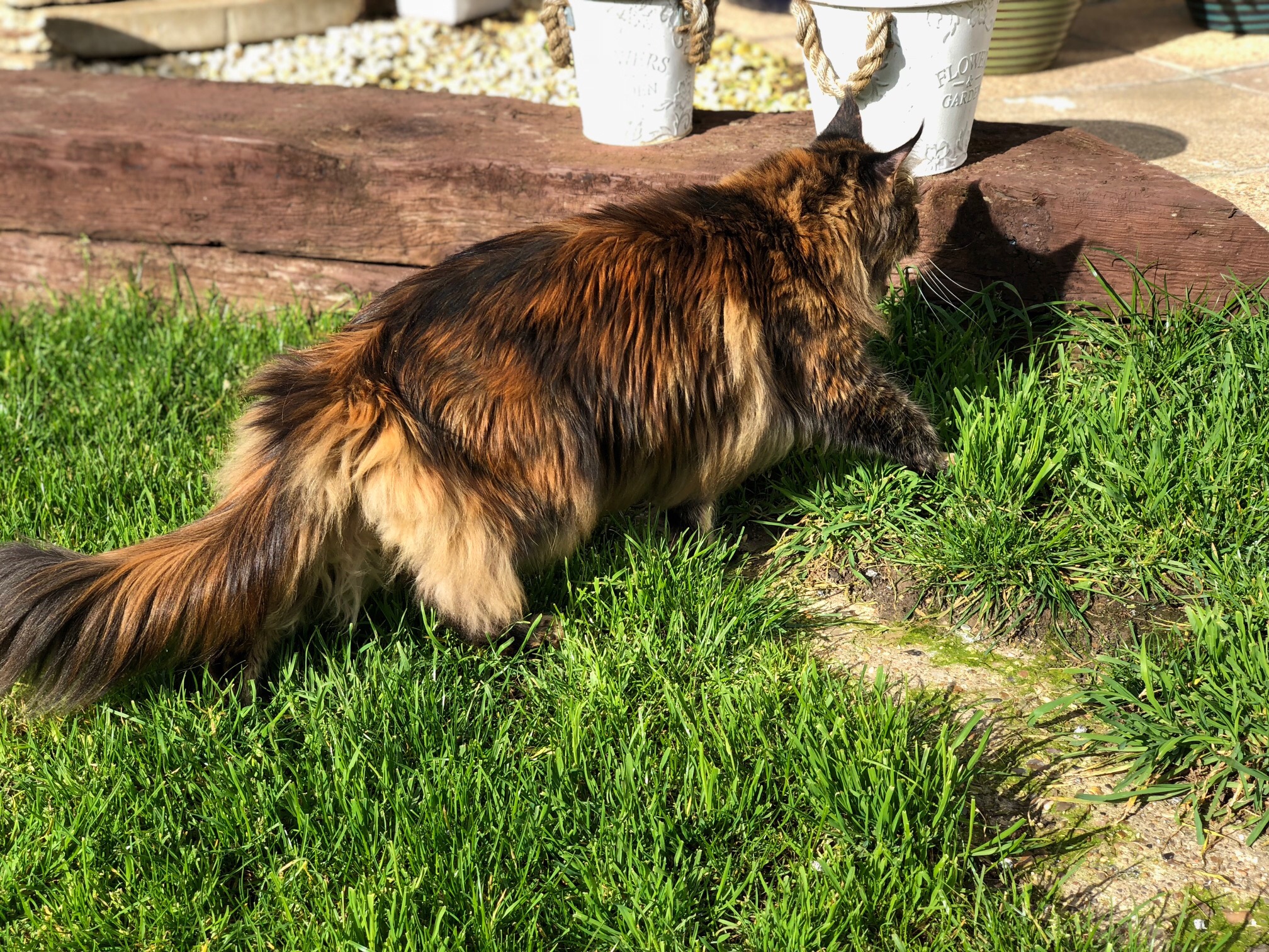 Teraz mam dostęp do kota działkowego - tzn. rodzina ma działkę z domem, gdzie przemieszkujemy w weekendy, no i pojawił się Kot. Kot sobie mieszka na działce, ma zapewniony serwis "wet" i co drugi dzień michę (jak jesteśmy - codziennie). Oczywiście na głaskanie też przychodzi