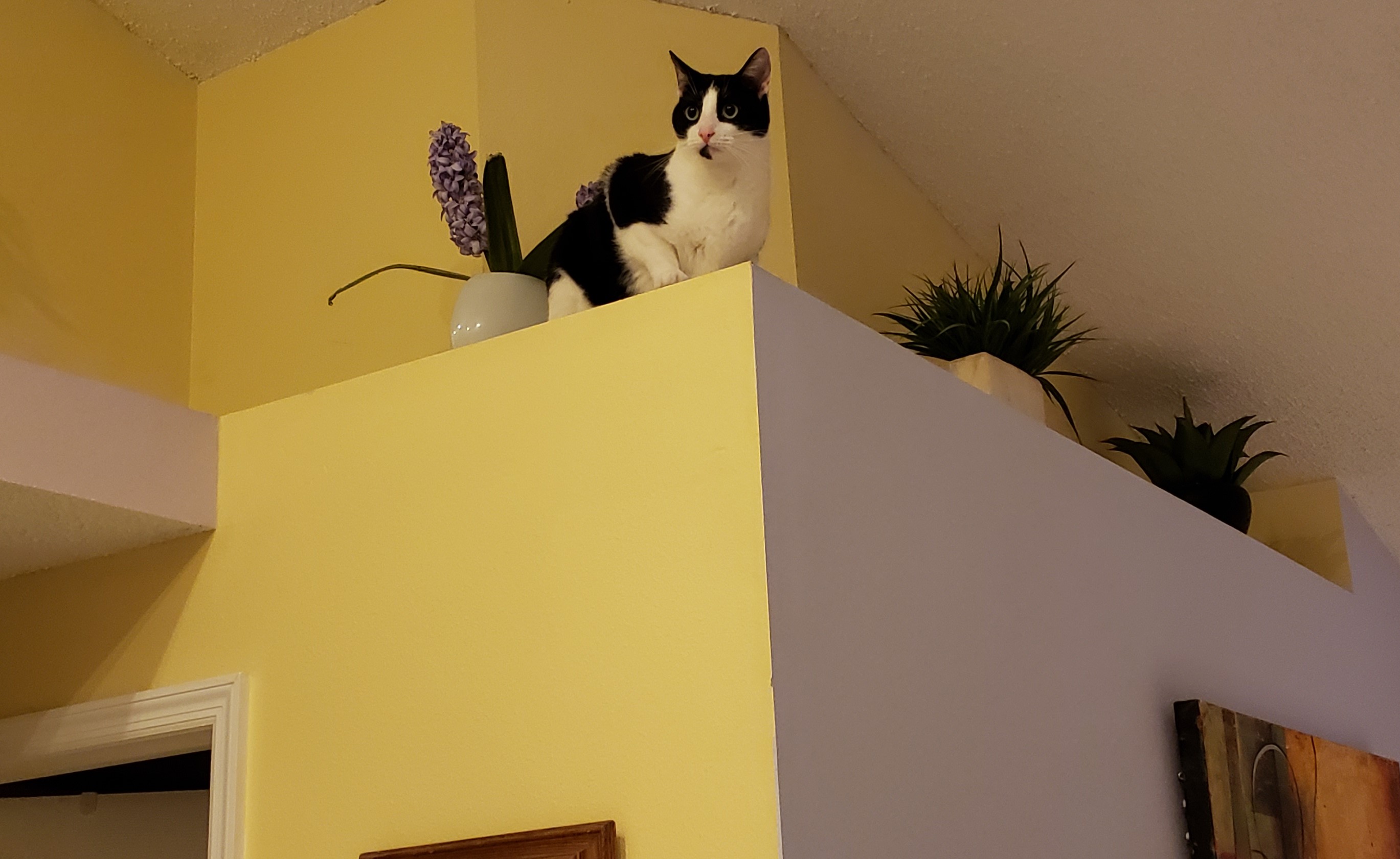 Ale ostatnio znalazł sposób jak się dostać na gzymsy i półki , których mam w domu sporo.