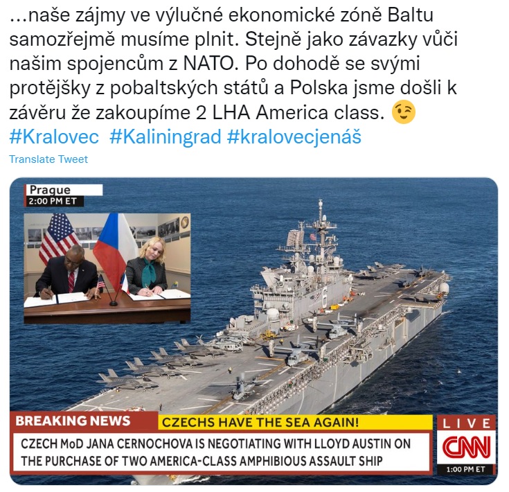 Nie wiem czy słyszeliście, że Czesi zakpili z ruskich referendów w UA i rozpisali referendum za przyłączeniem Kaliningradu do Czech. Powołali się na to, że Kaliningrad został założony na cześć czeskiego króla Przemysła Ottokara II, Oczywiście je wygrali, ale teraz jeszcze proponują obwód Kaliningradzki podzielić między PL i CZ.