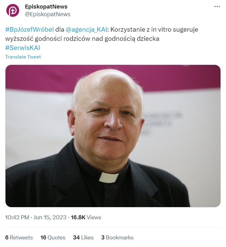 Z Chrześcijaństwem in vitro nie ma nic wspólnego. Powiem więcej jest w olbrzymiej sprzeczności.