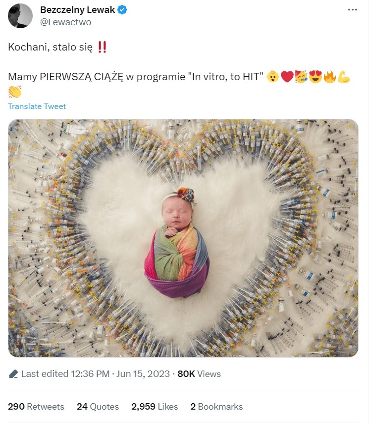 Za całą nadwyżkę zorganizował wraz z lekarzami i ludźmi bezinteresownie w tym pomagającymi program finansujący in vitro parom nie mogącym mieć dzieci "In vitro, to HIT".
