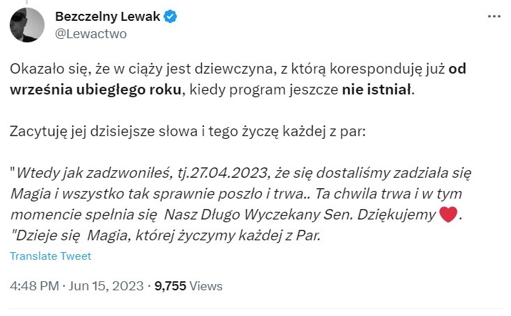 Właśnie wczoraj poinformował o pierwszej ciąży.