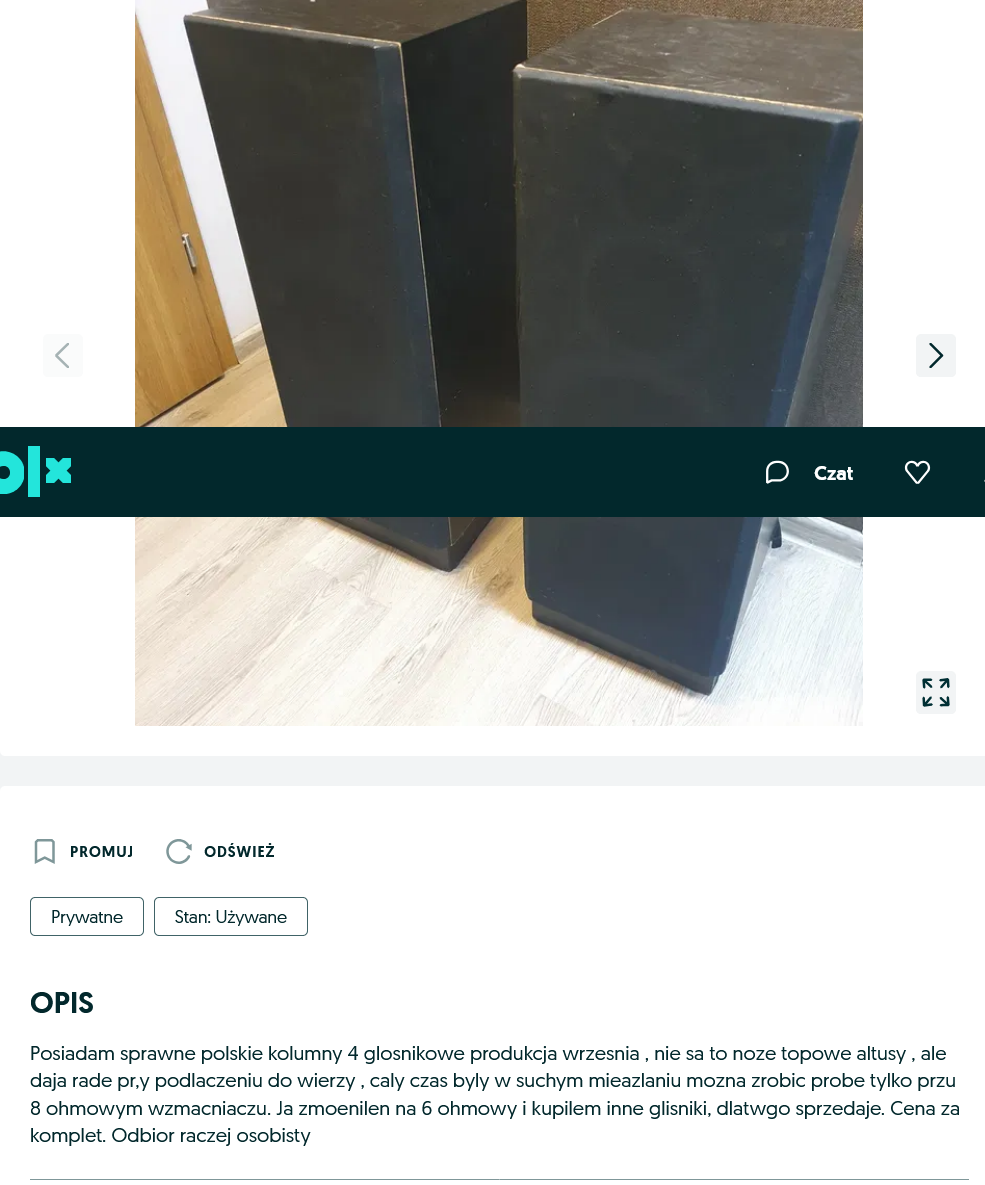 Screenshot 2025-04-24 at 21-38-09 Glosniki 120 wat kolumny polskie altus 82 x 30 szer x 28 -4 glisnikow Poznań Winiary • OLX.pl.png