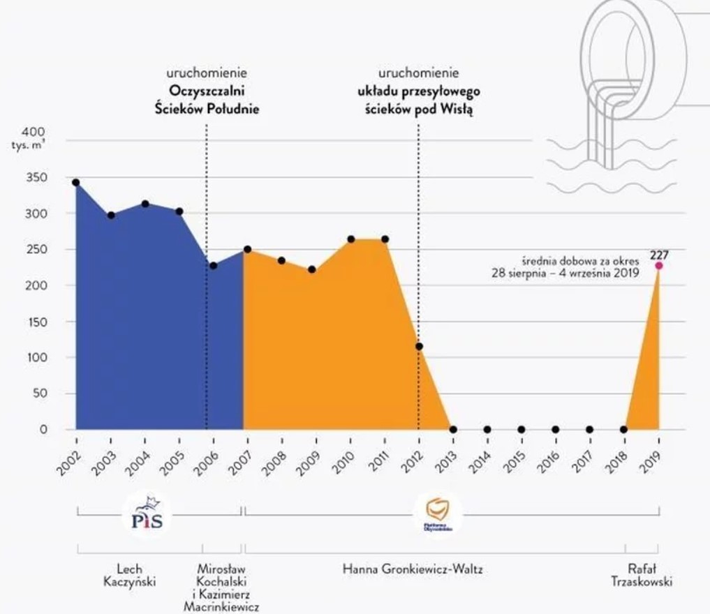 Pierwotny plan był taki, że będzie druga oczyszczalnia, ale ekipa Kaczyńskiego stwierdziła, że rura lepsza. Gronkiewicz-Waltz tylko kontynuowała inwestycję. No i teraz Trzaskowski winny, no nie?
