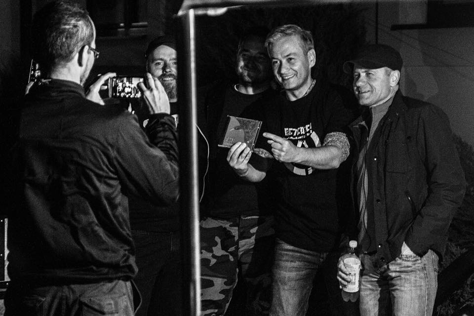 Ostatnio (to znaczy we wrześniu jeszcze) byliśmy na pankowym koncercie w Gorlicach z okazji ileśtam lecia tamtejszej sceny punkowej. Dobry zestaw kapel między innymi klasyczny italiański hardcore punk Raw Power. Nagle robi się zamieszanie, w tłumie pojawia się znany polityk (na zdjęciu drugi od prawej), kupił jakieś płyty, koszulkę Dezertera, posłuchał muzy, zapozował do paru zdjęć i zniknął, ot taka historia
