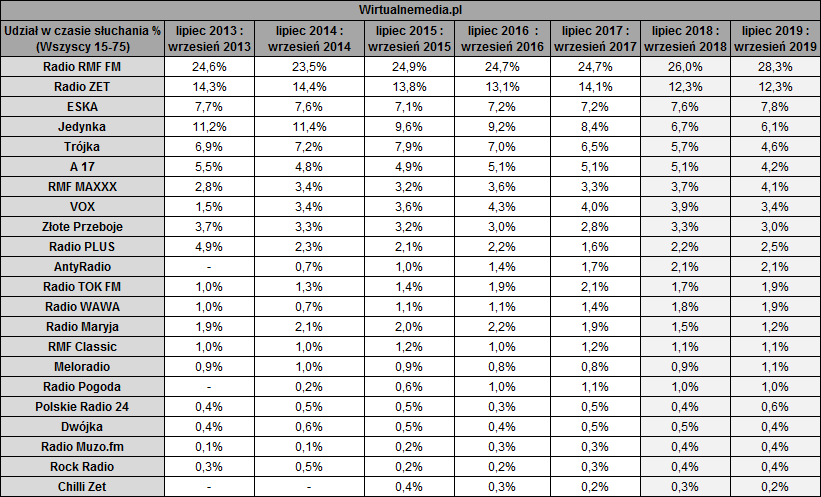 3jka nigdy nie miała wielkiej słuchalności w porównaniu z takim kołchozem jak rmf czy inne zet bo to w każdym aucie,autobusie leci czy tego chcesz czy nie głównie dzięki pokryciu, te 2% spadku od 2013 to jest całe nic w porównaniu z tym co mają najwięksi... kto tam tego słucha nie ma znaczenia publiczne nigdy im nie dorówna i to cud że jeszcze to funkcjonuje