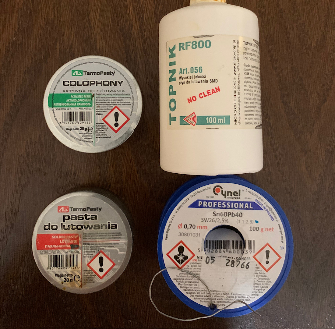 Jacek pokazuje czego używa u siebie. A dla mnie cyna, pasta, kalafonia czy topnik jeszcze nic nie mówią użytkowo