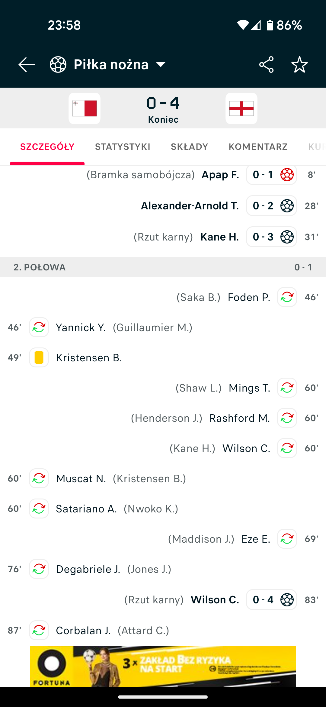 Nie oglądałem, sprawdziłem wynik. O ja pie...e