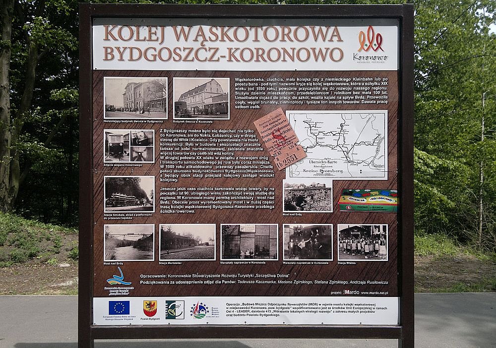 Fajne, asfaltowe, albo szutrowe (ale utwardzone, nie wiem jak to się nazywa) trasy wzdłuż Brdy i jej rozlewisk, jezior, lasami, polami itp... Piękne tereny! Bożenkowo, Samociążek, Tuszyny, Koronowo, Pieczyska... Byłem pod wrażeniem zabytkowego mostu kolejki wąskotorowej zaadaptowanego na pieszo rowerowy