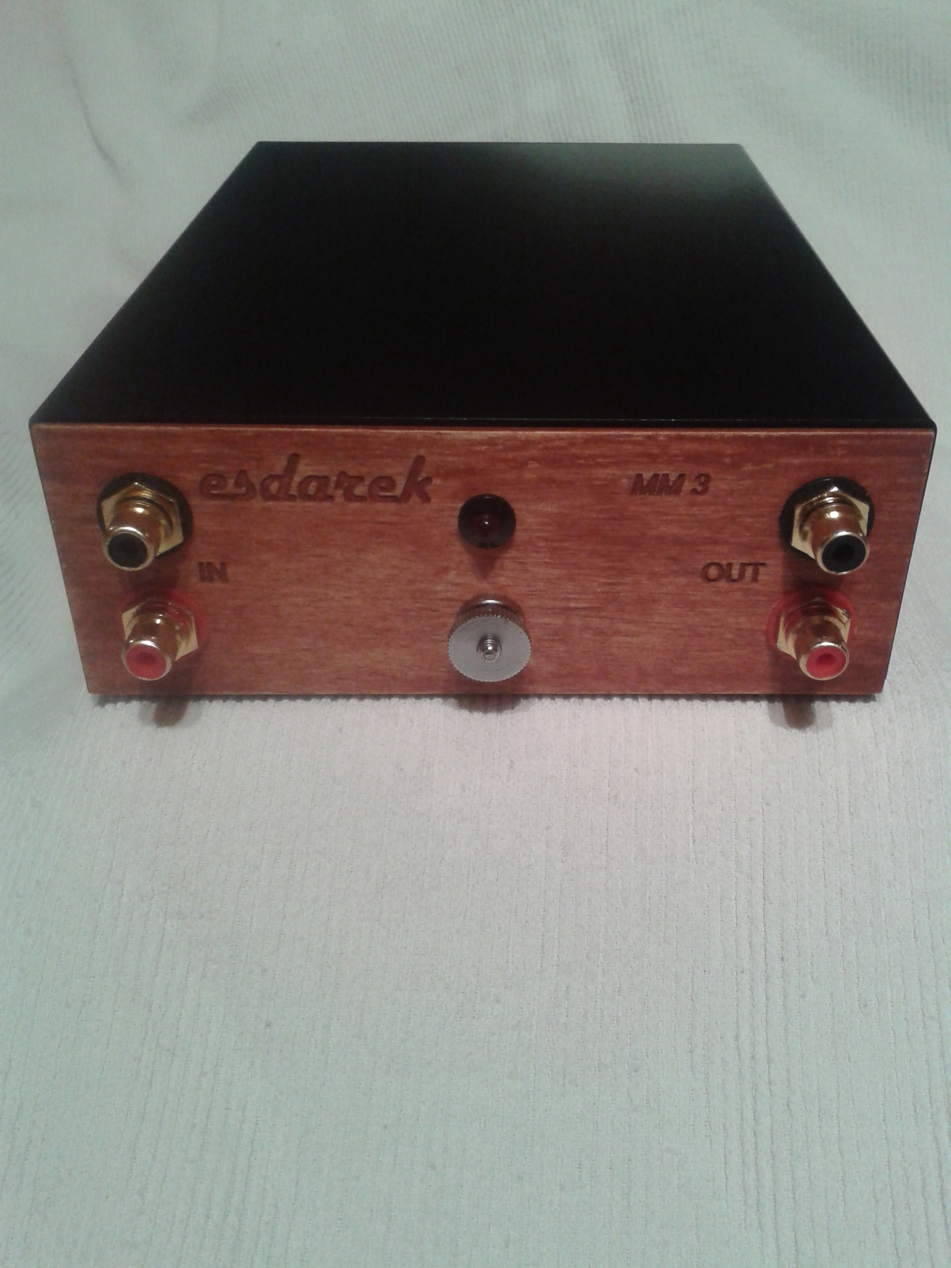 Wojtek : dzisiaj mam jego wyrób u siebie w domu , sprawdzam na swoich śmieciach. I cóż mogę powiedzieć prócz tego że WSZYSTKIE swoje płyty muszę odsłuchiwać od początku. Wydaje się że jak kupujesz sprzęt niby z wyższej półki to będzie super. A tu gówno prawda. Włożony w mój amplituner fabryczny przedwzmacniacz gramofonowy to widać shit jakich mało. W przedwzmacniaczu Darka wszystkiego jest więcej . Góry , średnich, dołu. Wszystko jest bardziej czytelne, gra zdecydowanie głośniej / na Phono nastawione jest 42db a na CD bo tutaj podłączyłem przedwzmacniacz nastawione na 30 db./ wyraźne i to nie trochę . To różnica kilku klas .