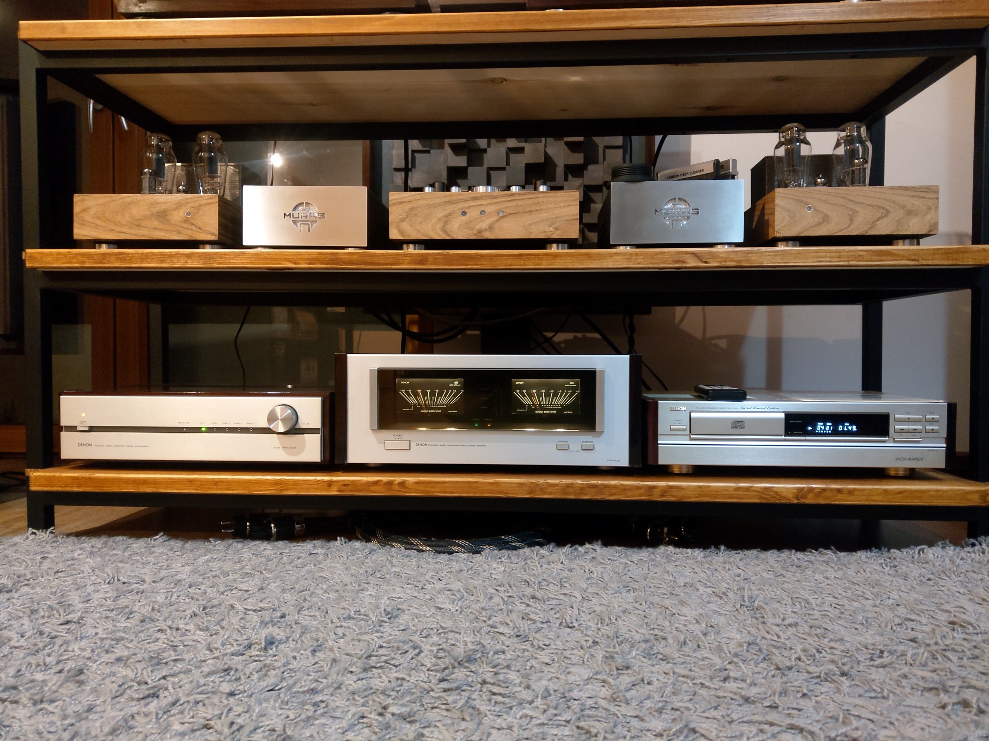 U mnie od jakiegoś czasu gości zestaw Denona - PRA 2000, POA 3000Z, DCD 1650GL. Wcześniej bywał u mnie gramofon DP 59L ale nie zrobił na mnie takiego wrażenia jak ten zestaw, który pod względem jakości wykonania, koncepcji technicznej jak i efektu odsłuchowego nie ustępuje pola japońskim tuzom tamtego okresu. Również cena końcówki mocy POA 3000Z jest porównywalna np. z Accuphase P 450 czy Luxman M 7. Zdjęcia zrobione jak zwykle nie są zbyt udane ale uwierzcie na słowo - całość gra i wygląda wyśmienicie. Lubię takie połączenie