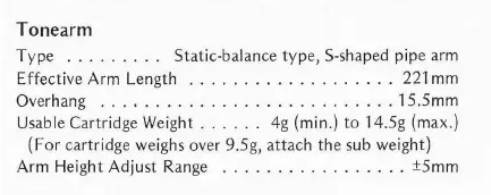 Chodzi mi "Effective tonearm mass".