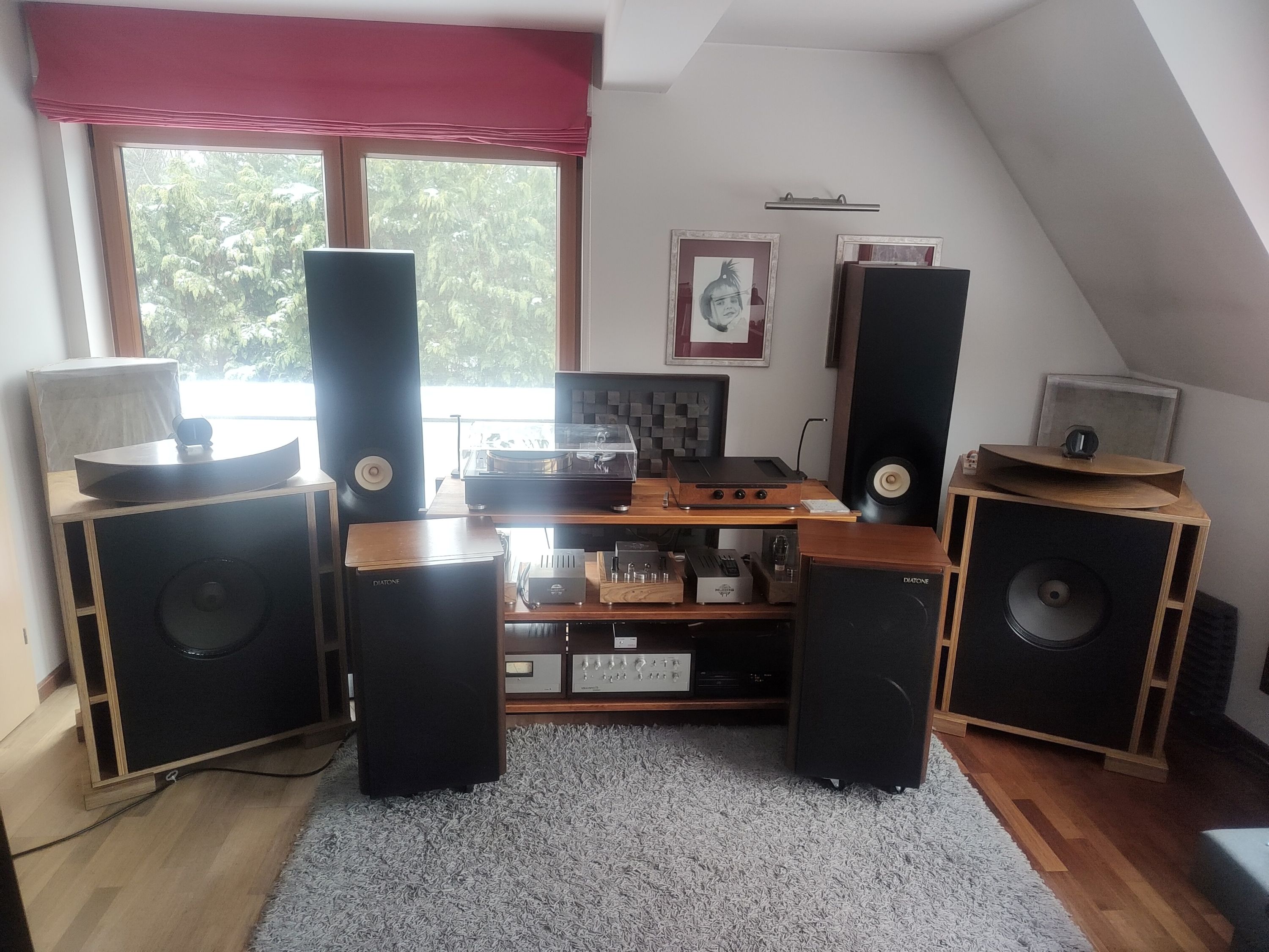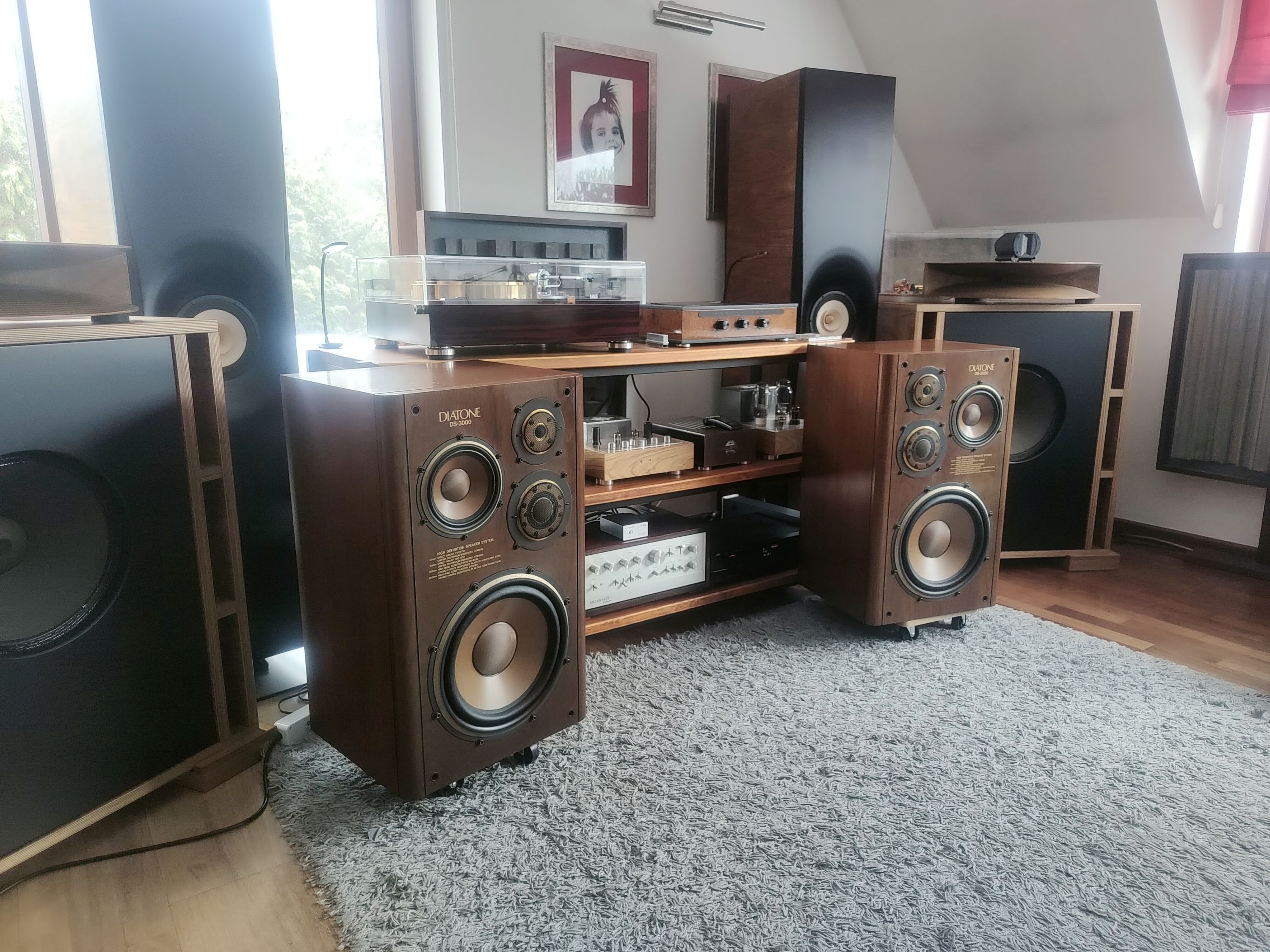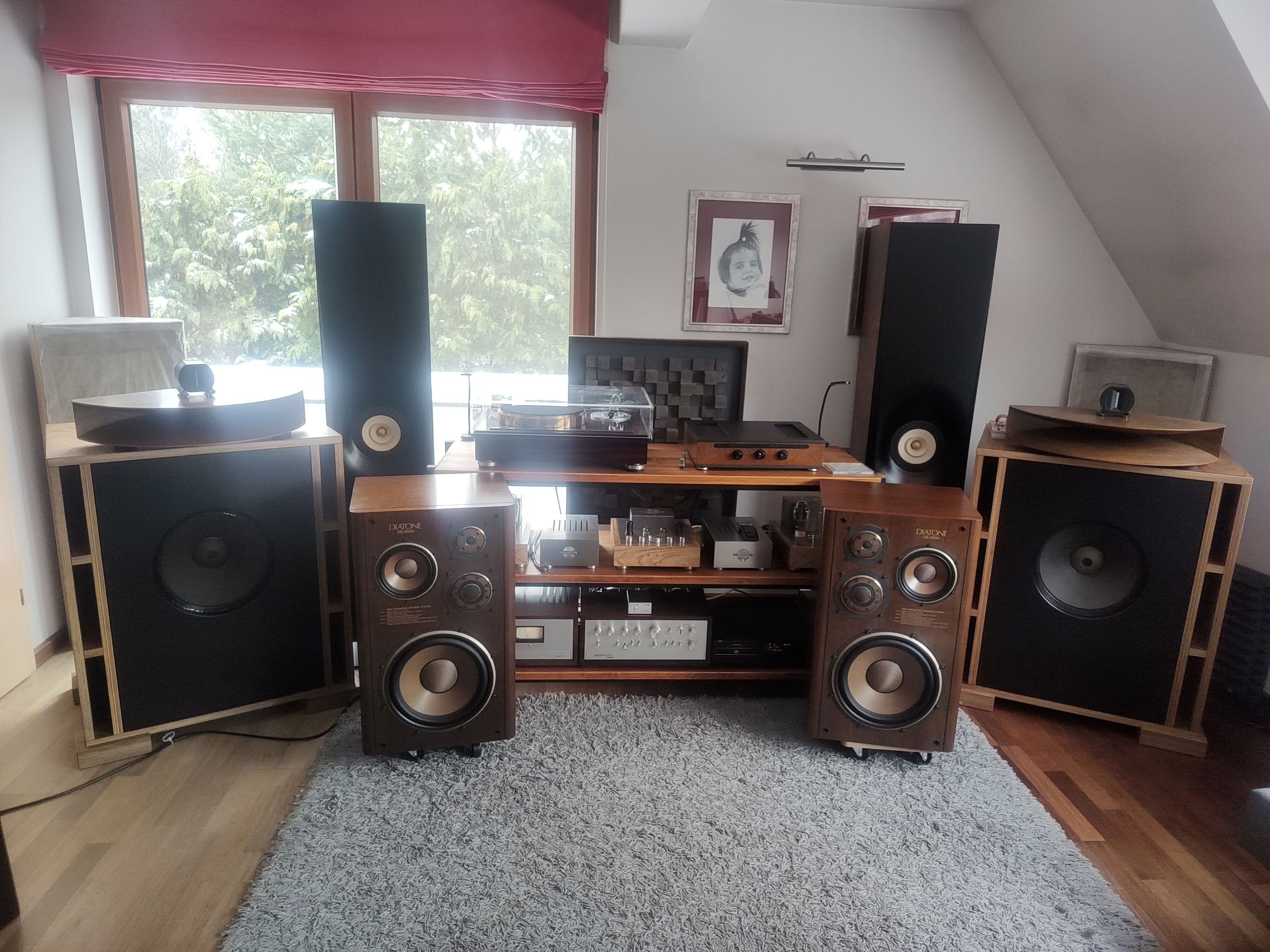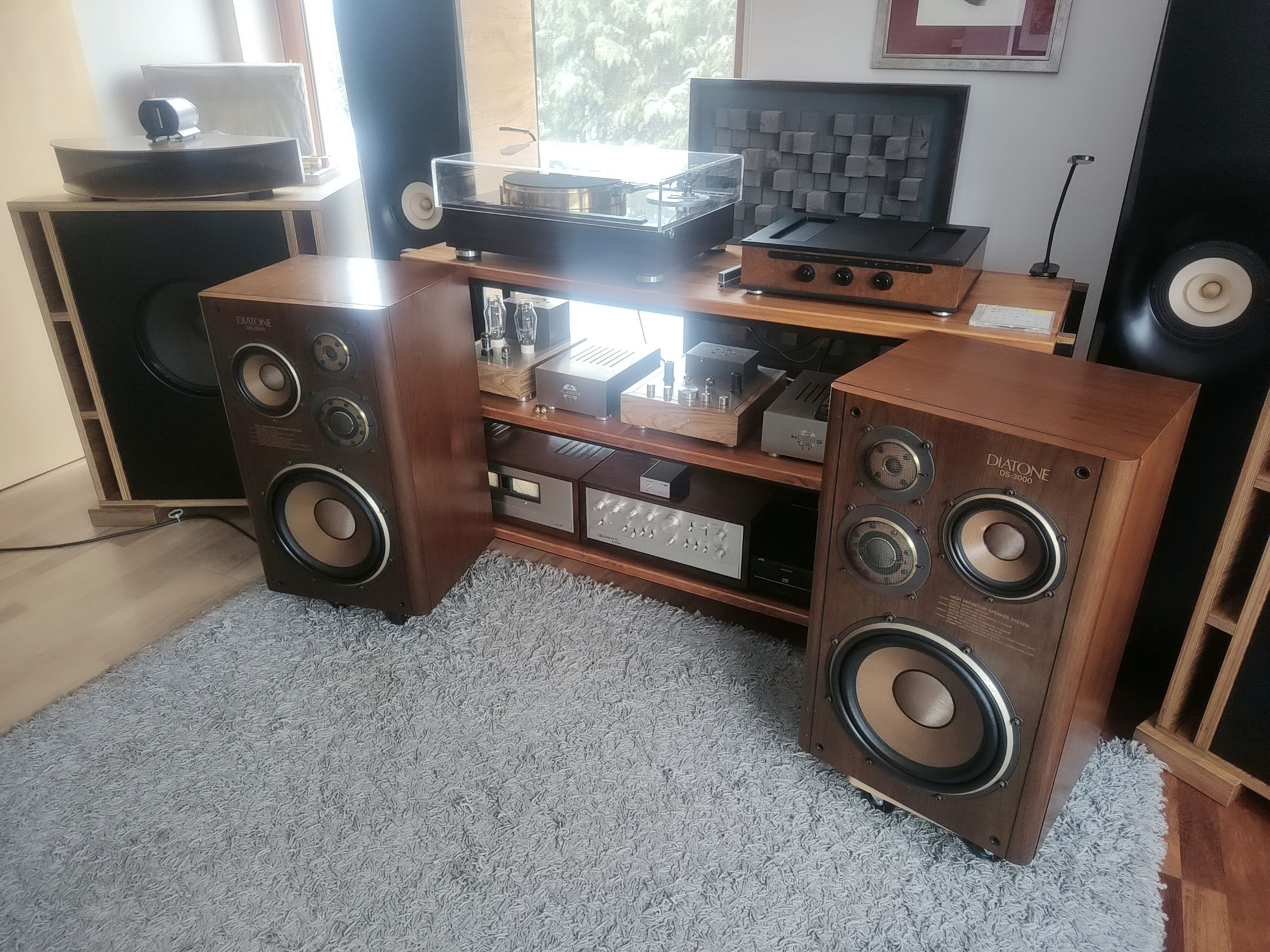 Trafiły do mnie Diatone DS 3000. Kolumny w pięknym stanie. Kupowane w Japonii i sprawdzane tam na miejscu. To jest bardzo ważne gdyż tylko w ten sposób można sprawdzić nie tylko stan wizualny obudowy ale i stan wszystkich przetworników. Głośnik basowy i śradniotonowy ma zawieszenie górne dość wrażliwe na warunki, w których są przechowywane. Potrafią wyschnąć na wiór i stają się bardzo twarde. Dodatkowo odkształcają się lub wręcz pękają i rozsypują się, Dotyczy to niestety większości głośników. W przypadku lekkiego usztywnienia można zastosować preparat zmiękczający i uzyskać bardzo dobry efekt. Najlepiej jednak kupić takie, które nie wymagają drastycznych czynności naprawczych. Dodatkowo głośniki średnio-wysoko tonowe oraz tweetery mają kopułki z bardzo cienkiego kewlaru, które chroni siatka stalowa. Lekkie wgniecenie siatki powoduje, że kruchy jak bąbka szklana kewlar rozpada się. To jest częsta bolączka transportowa i wtedy głośnik jest praktycznie do wymiany (tylko skąd go wziąć