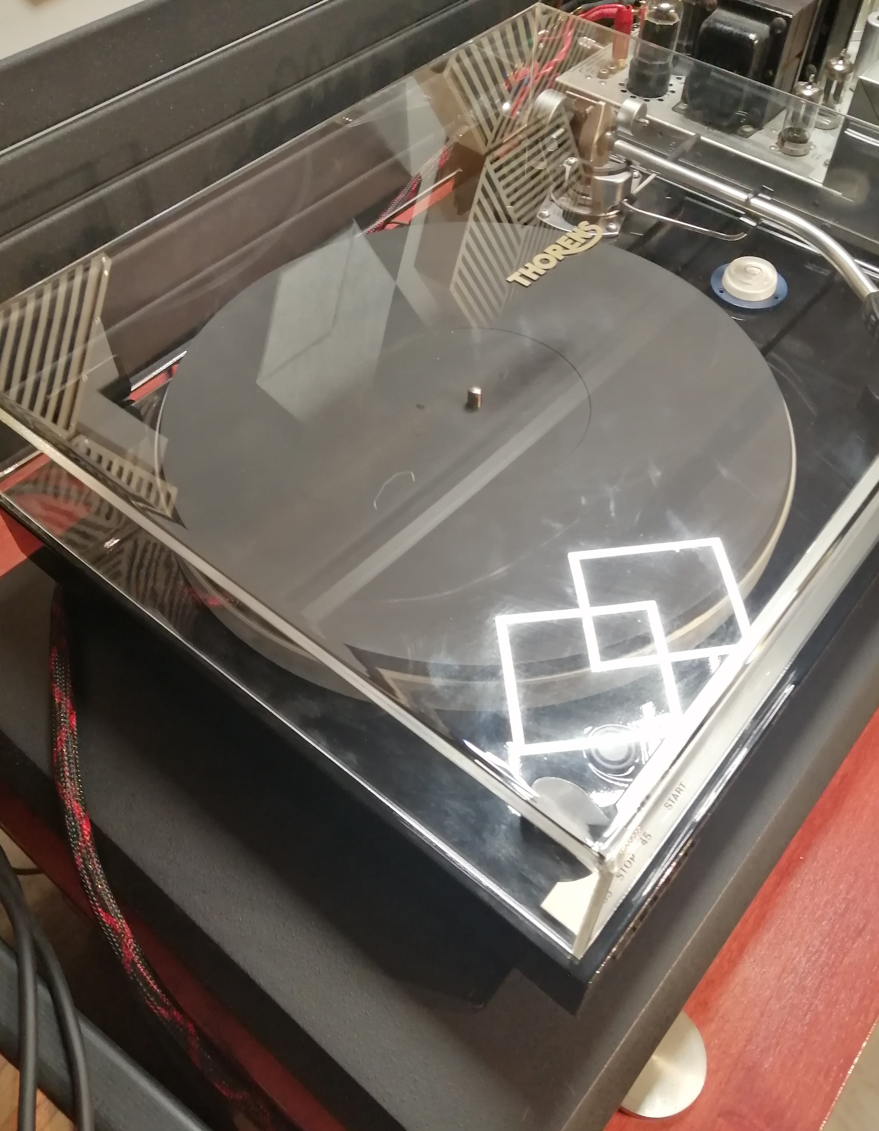 Tak sobie zrobiłem platformę antywibracyjną ze ścinków blatu przełożonych elastomerem - teraz stukanie w regalik nie przenosi się na gramofon.