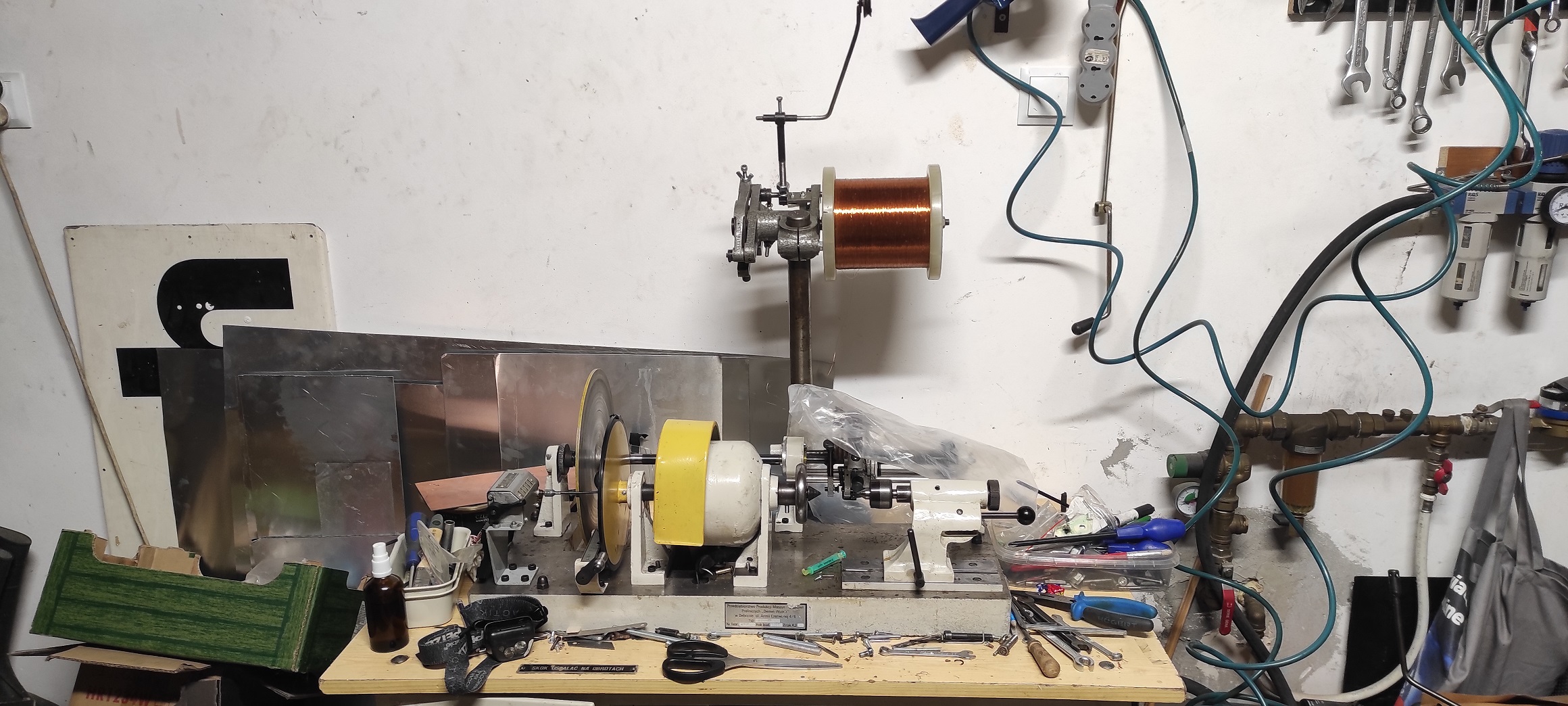 Musiałem wygospodarować trochę czasu na roboty wsobne. Czas już jakiś kiedy trafił do mnie do naprawy DAC z lat 90 w którym uszkodził się transformator sieciowy. Nie taki prosty bo i zasilanie analogu, przetwornika, cyfrówki i części lampowej osobno. Podjechałem do znajomego fachowca z tym tematem ale niestety zostałem spuszczony z wodą sedesywną jak to lata temu zwał mój mały syn. W sumie zrozumiałe, rozebrać, policzyć, wyczyścić, nawinąć. Że w warsztacie mam wszystko to na pewno - ale nie wszystko działa, nawijarka też jest. Praktyka w szkole średniej była no i w tzw. międzyczasie nawinąłem kilka traf do lampowych wydumek, były circlotrony, quad II itd. Remontuję ją już jakiś czas. Polska produkcja 97 rok - wszystko krzywe, nie pasuje, żle skręcone, chyba schyłek działalności po PRL i zmiot bubli z magazynów (tak myślałem, ale widziałem w sumie ze trzy inne - nie lepsze). Prawie wszystko gotowe ale diabeł jak zwykle tkwi w szczegółach. Dostała falownik, jest zrobiona na nowo. Co ciekawe - fabryczny napinacz drutu nie miał prawa działać poprawnie - zupełnie źle geometrycznie rozwiązany. Rozwiązaniem i to bardzo dobrym okazało się zamontowanie go odwrotnie