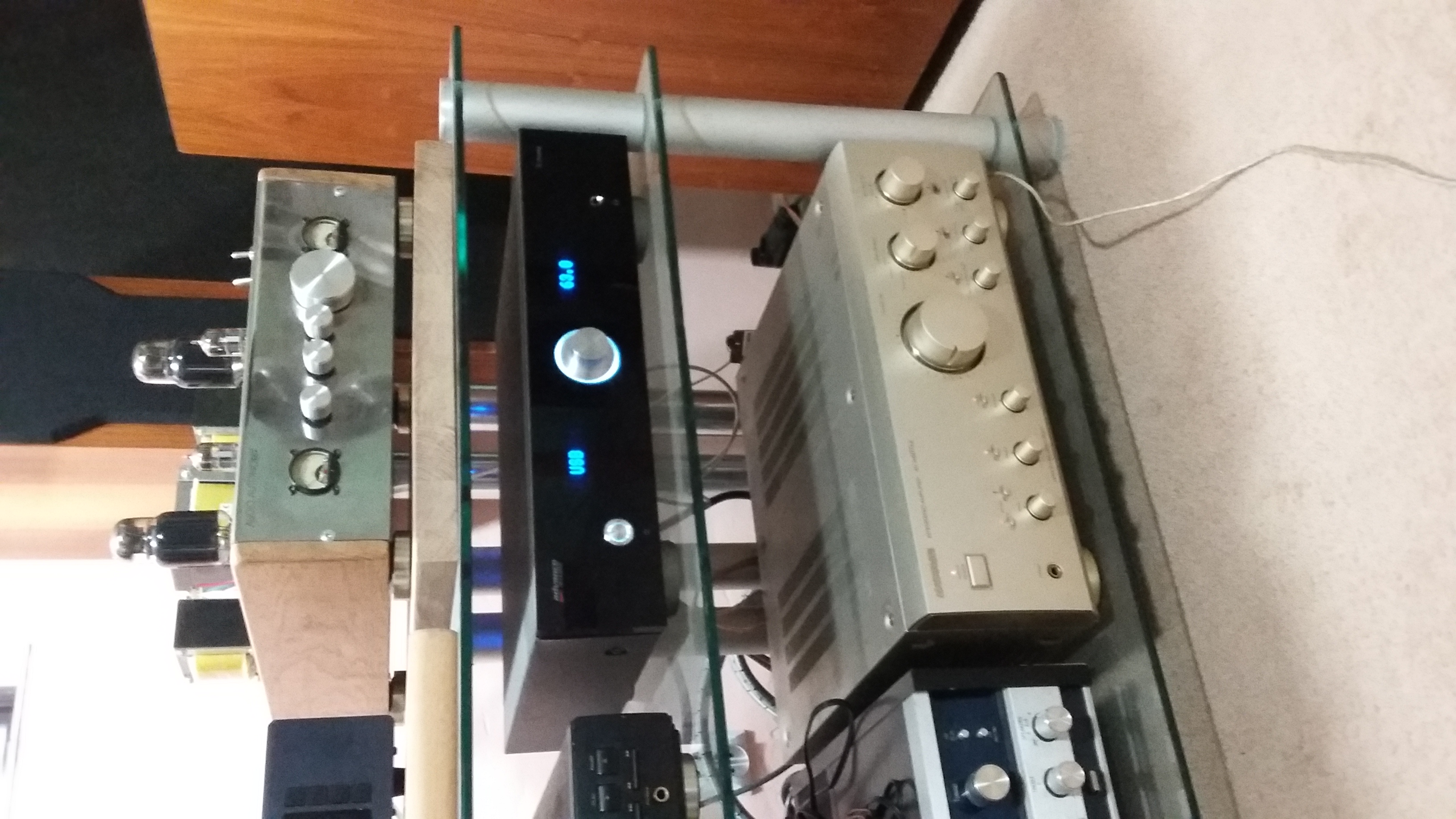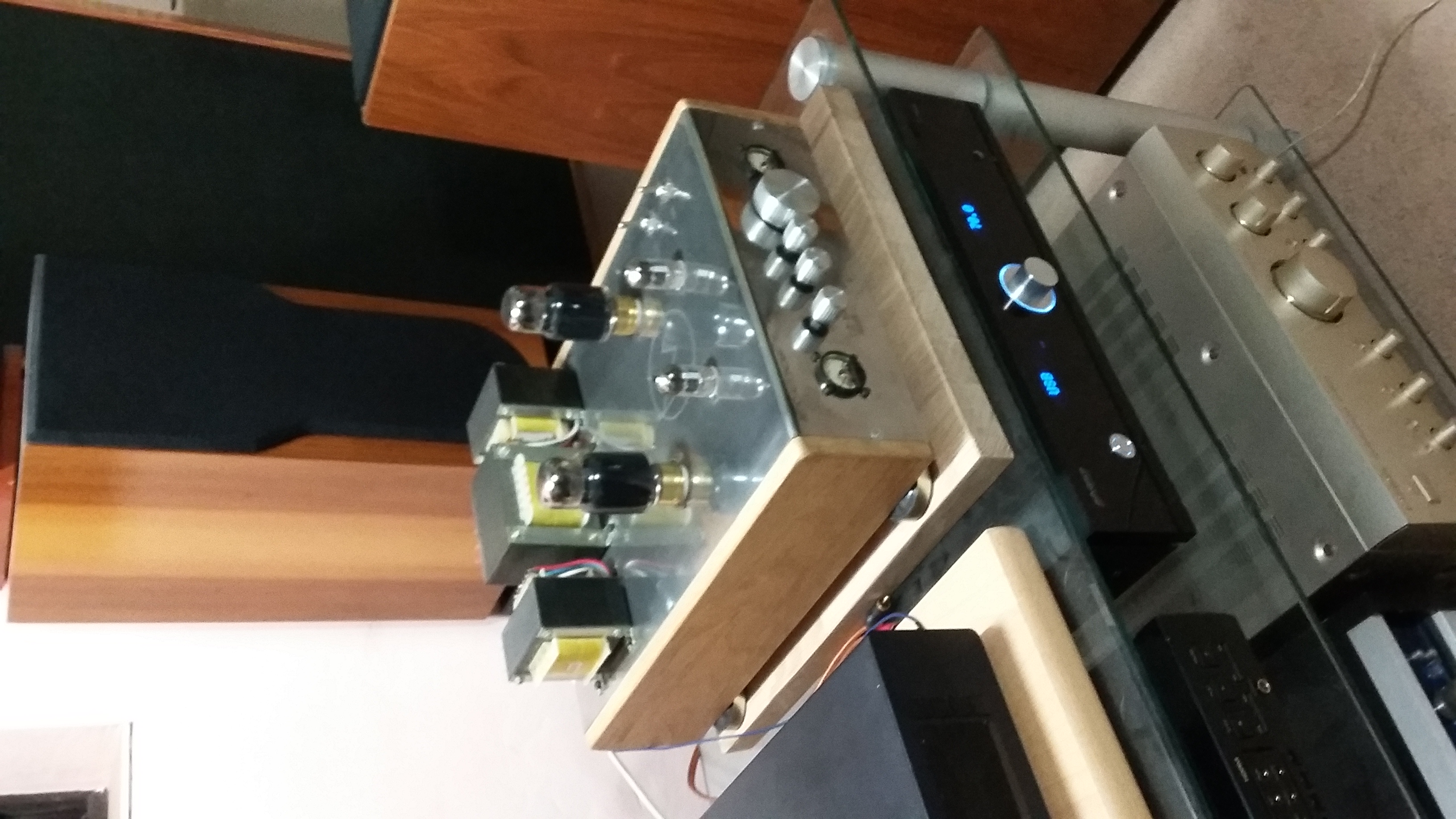 i raczej już nie będę szukał jakiejś końcówki do tych kolumn. Te, które miałem okazję mieć w ostatnim czasie, jakoś nie były odpowiednie. W tej chwili z lampą używam dużo słabszych kolumn czyli JBL L-86 oraz Dali 7. Z tranzystorami one nie brzmią zbyt dobrze, ale do mojej lampy są bardzo odpowiednie. Wcześniej używałem Coral 10SA-5A, ale obecnie stoją bezczynnie. Na fotce częsc mojego sprzetu. Lampa w serwisie u konstruktora a reszta nie zmieściła sie w kadrze