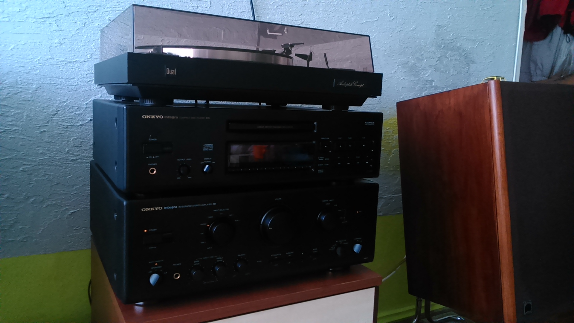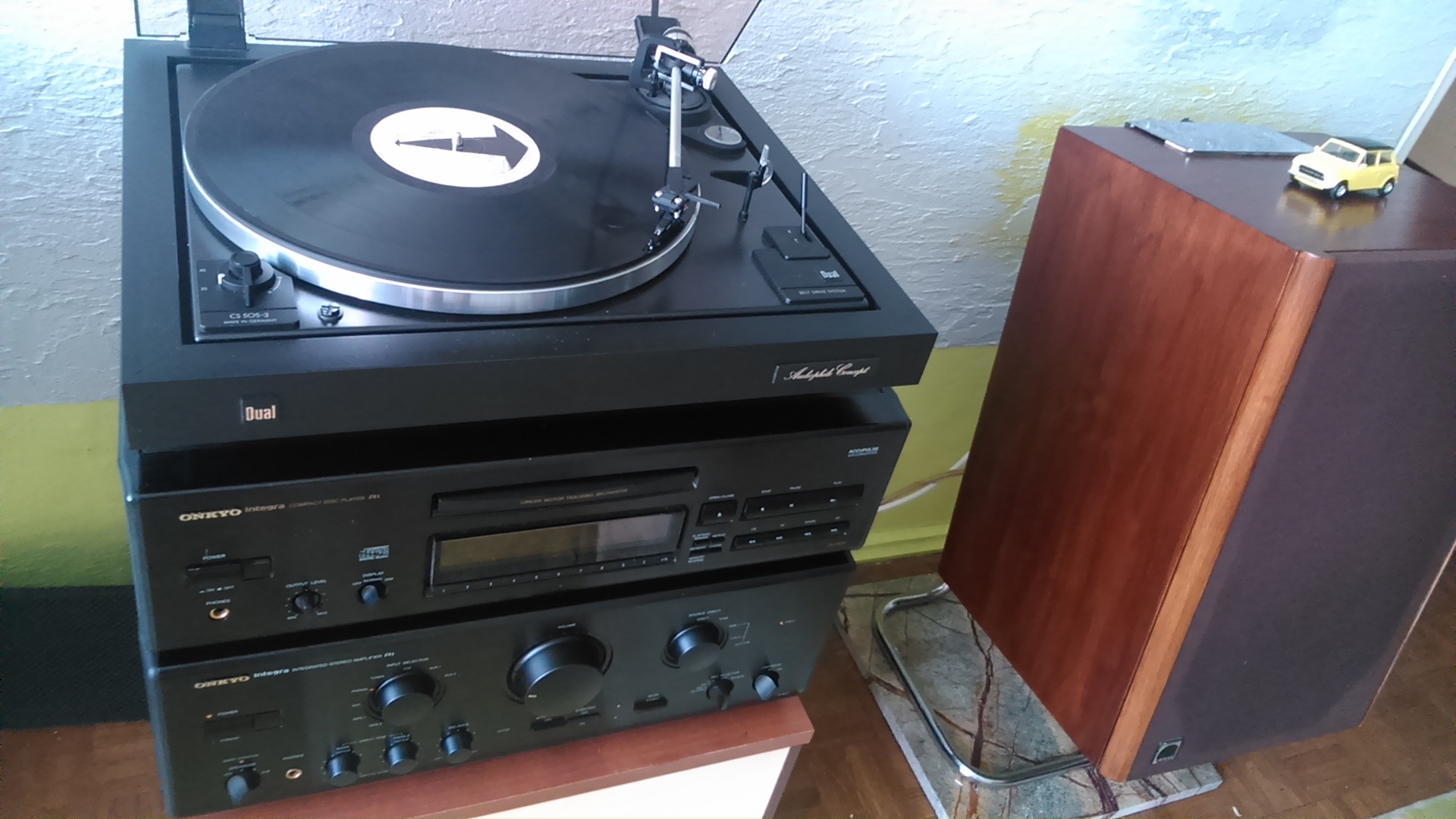 Wzmacniacz Yamaha A-S500, gramofon Thorens TD-104, wkładka Sumiko Pearl, przedwzmacniacz Pro-Ject PhonoBox MM, kolumny DIY (oddzielny temat