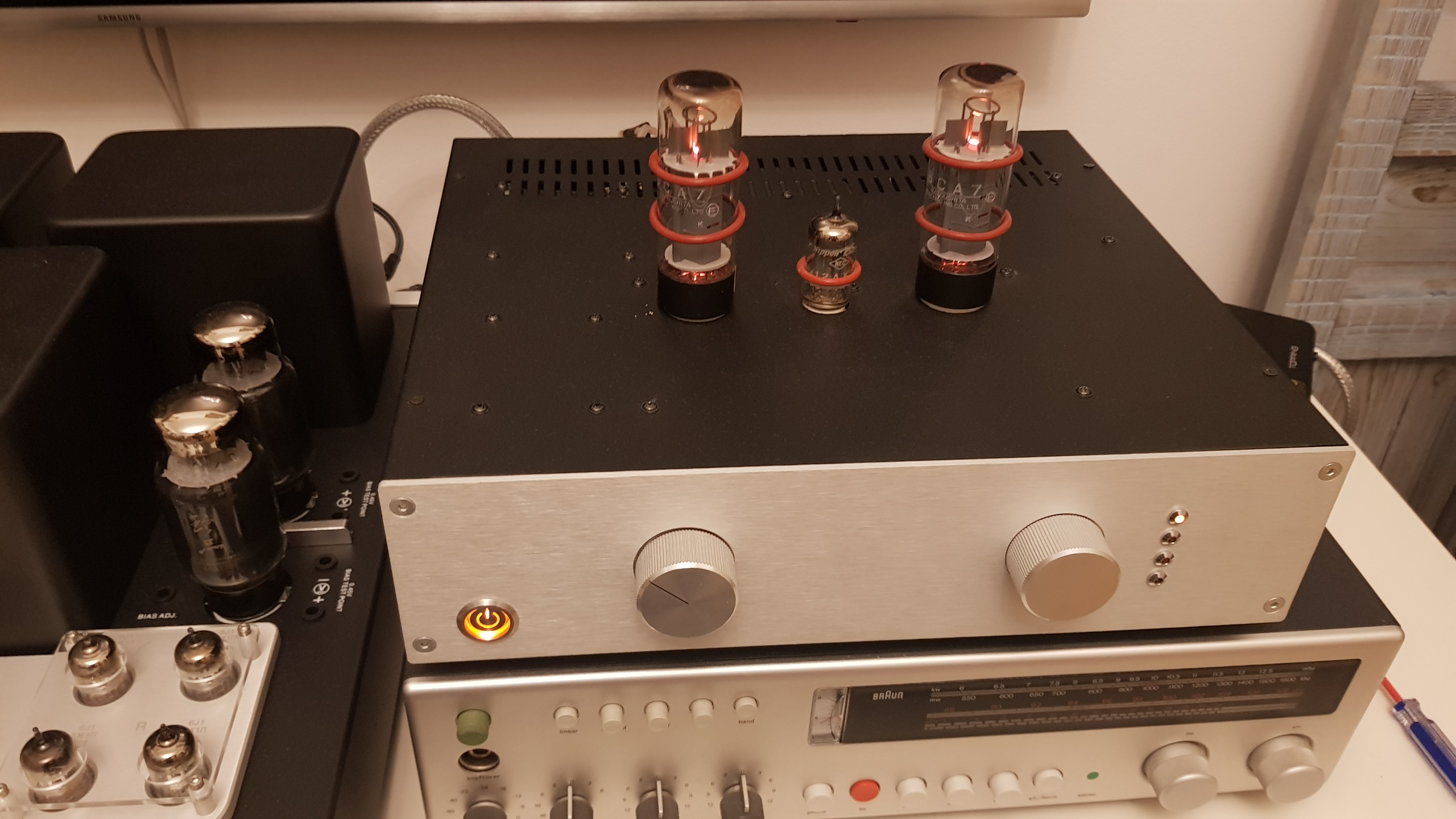 Pudełko z lampami zaciekawilo małżonkę, pomyślała, że to buty, jak zobaczyła co jest w środku puknęła się w czoło. Z biegiem czasu poprzekładam lampy w obu wzmacniaczach.