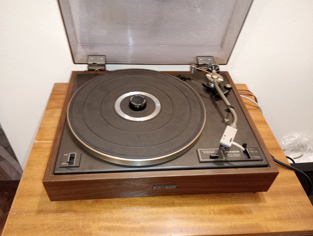 Wg opisu "Gramofon 100% sprawny, zachowany w dobrym stanie, na gramofonie wkładka Kenwood w dobrym stanie spokojnie do grania o świetnym brzmieniu. W gramofonie założony nowy pasek" link: https://allegrolokalnie.pl/oferta/pione ... on-vintage