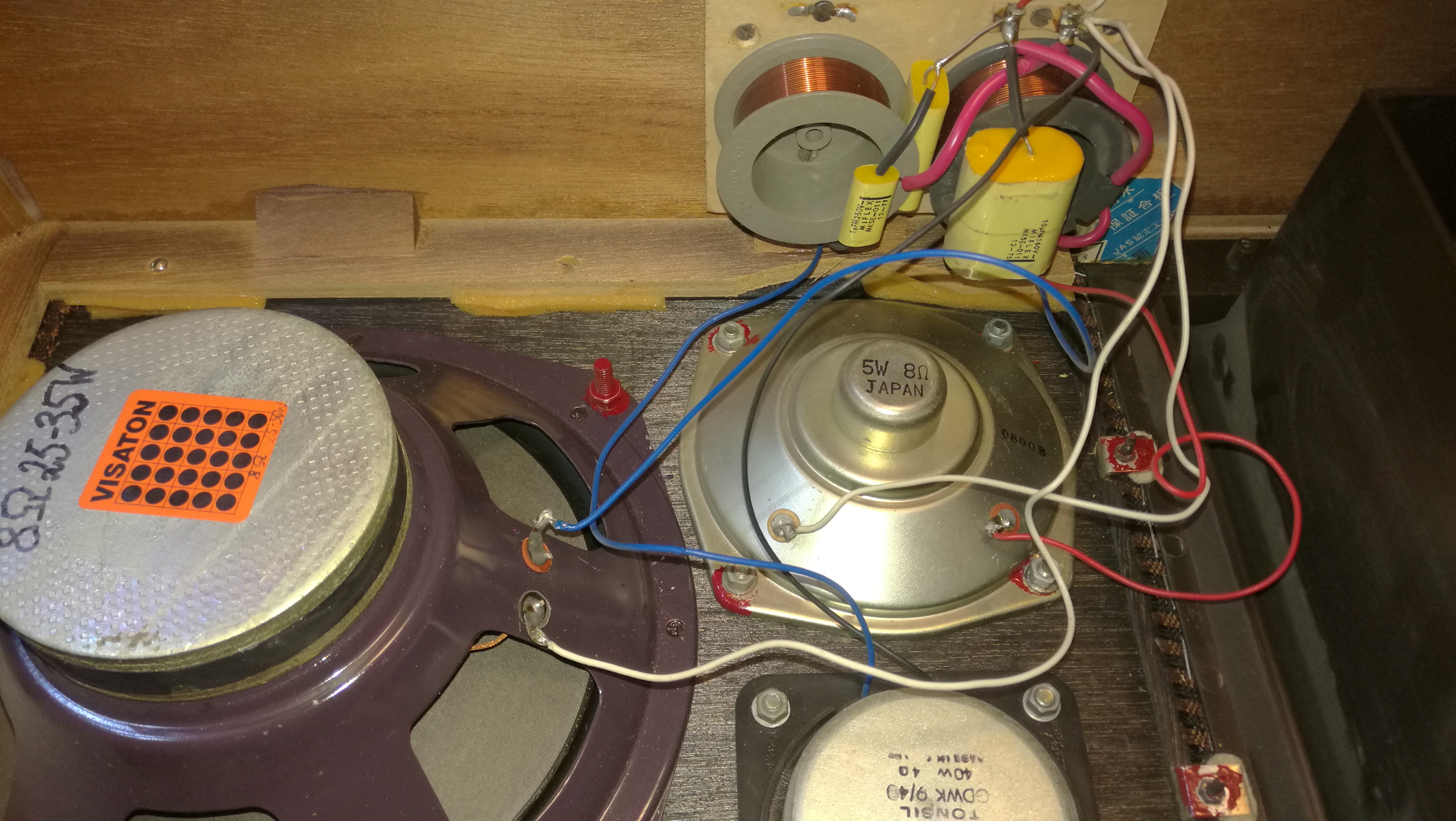 Tonsil pewnie wymieniony był, śróbki na kolumnach jedne z czerwoną farbą zalane chyba dla gwarancji, ale tonsilowe nie, no i ten napis Japan na głośniku, bass refleksie i na drewnie jest kartka w japan krzaki... Coś za dużo na PRL owską produkcje. Raczej bym lukał na te dziwne cewki i zwrotnice, jak ktoś się zna na tym to by poskładał rebusa.... Ale nic to, Fajnnie mi grają i tyle... Choć bede szukał dalej