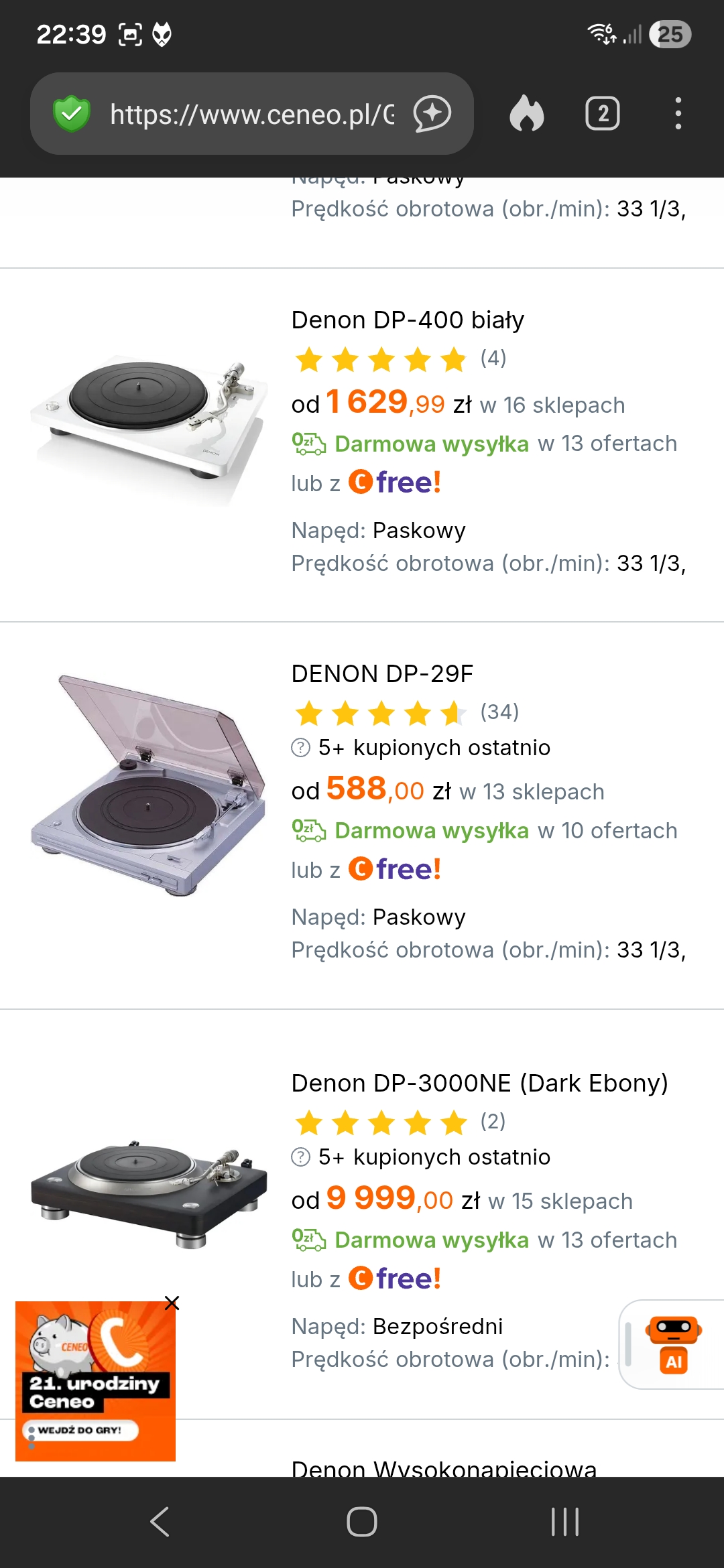 - Gramofon: Denon DP-1300M