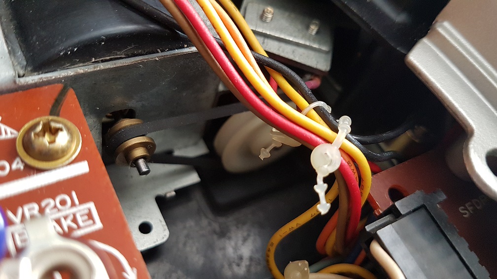 Ok dzięki Wam za dobre słowo, jakoś udało mi się przejść przez instrukcję. W ramach bliższego zapoznawania się ze sprzętem postanowiłem zajrzeć do jego środka i przy okazji sprawdzić czy Francuz faktycznie wymienił na nową, gumkę napędu ramienia. Na foto jest też tajemniczy czarny krążek z otworem.