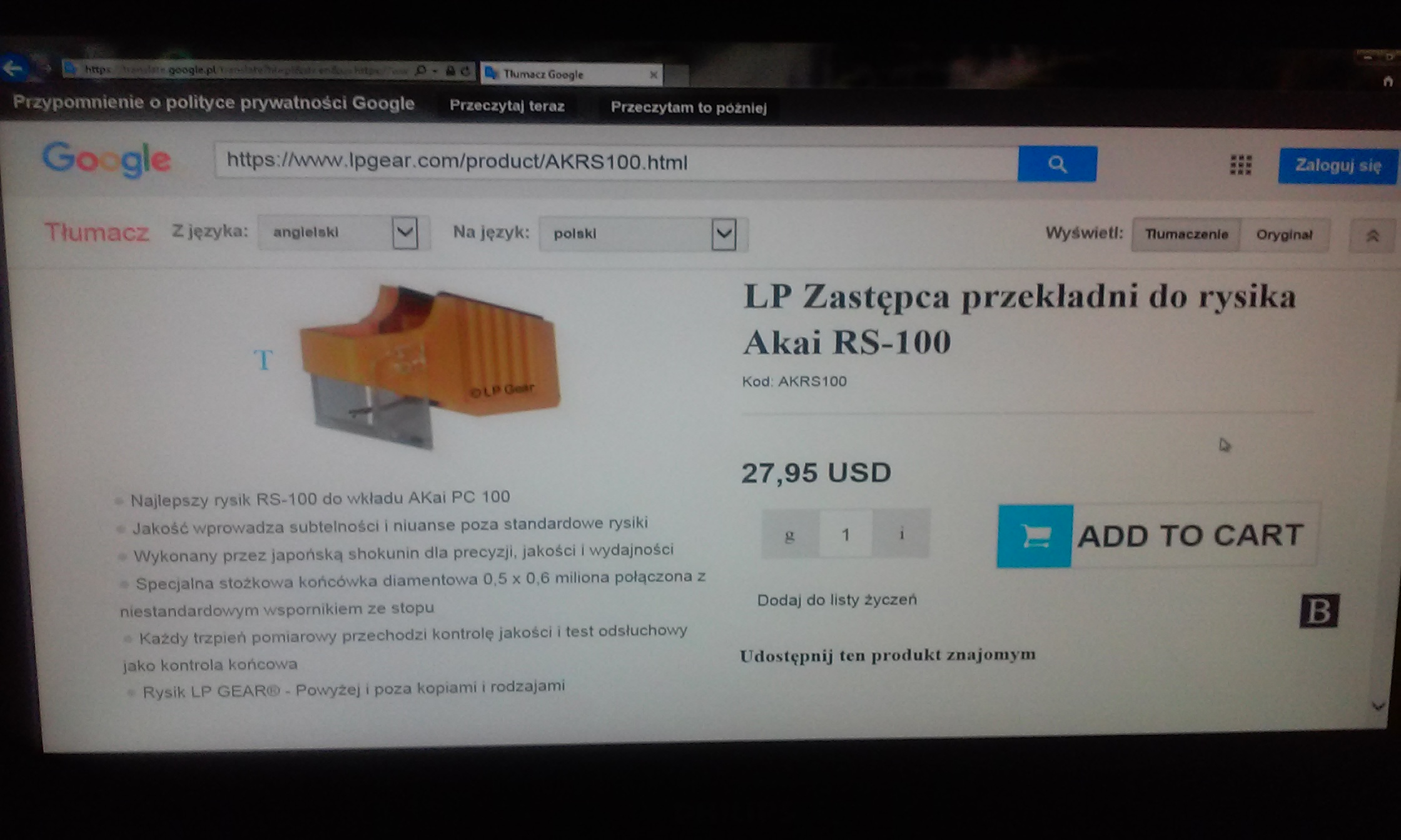 Planuje zakup gramofonu AKAI AP-100C - poszukuje tego konkretnego modelu bo nie znam się zbytnio, a jak na początek ten mieści się w moim budżecie i miałem możliwość odsłuchu u znajomego
