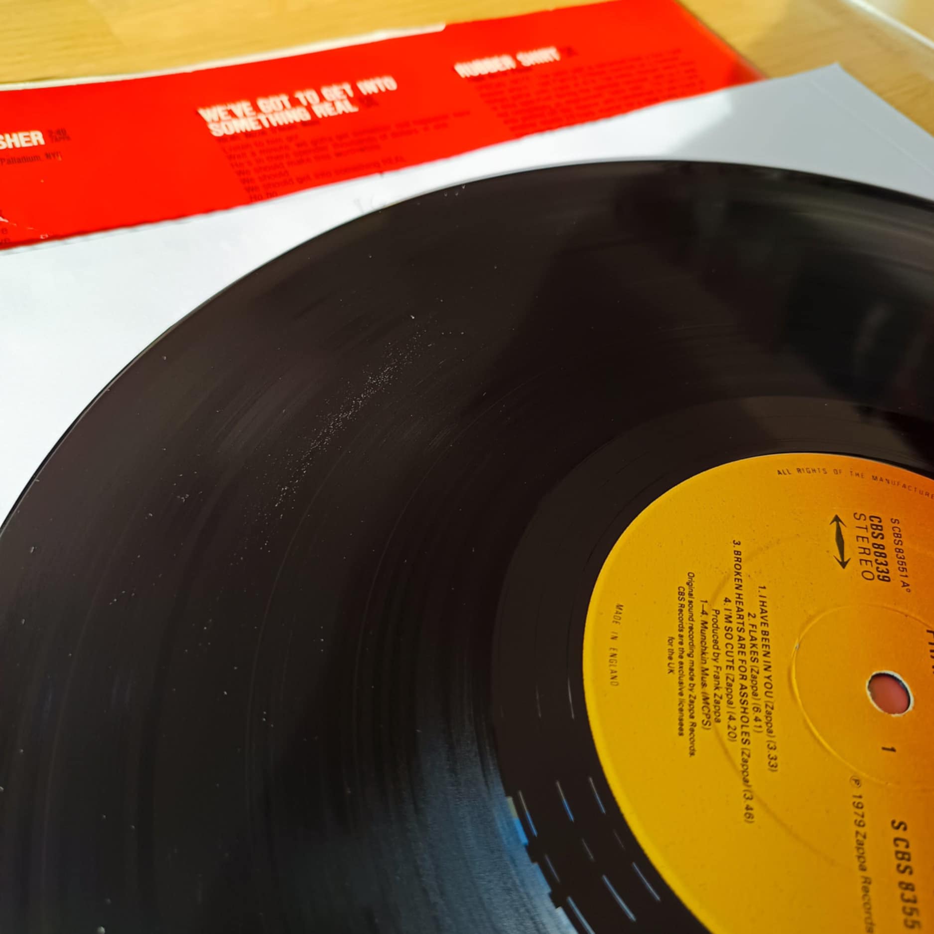 Cena umiarkowana ze względu na płytę nr 1, która ma 2 niewielkie defekty: primo: lekko faluje na początku, z czym ramię mojego gramka sobie poradziło bez problemu... secundo: smuga na 1 płycie str. A na drugim numerze (widoczne na ostatnim zdjęciu). Płytę umyłem 2x, jechałem wczoraj igłą po tym miejscu kilkakrotnie i dosłownie lekko słyszalne zniekształecenia da się usłyszzeć. Gdybym o tym nie napisał, to odsłuchowo śmiało można dawać VG+ . Polecam.
