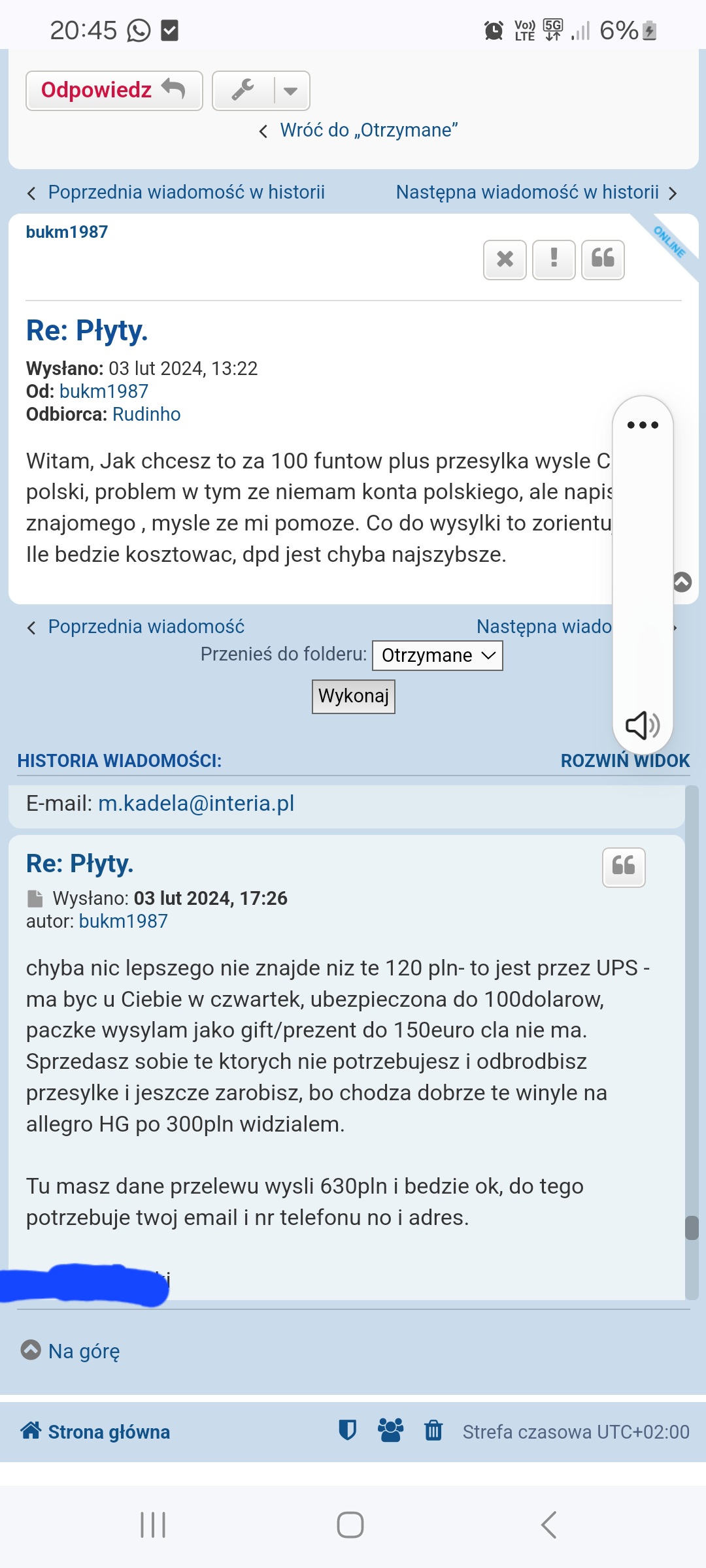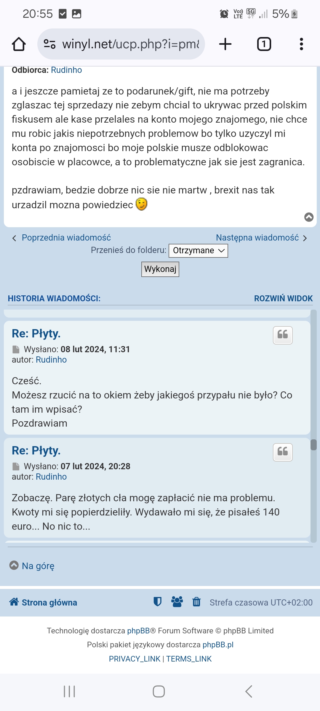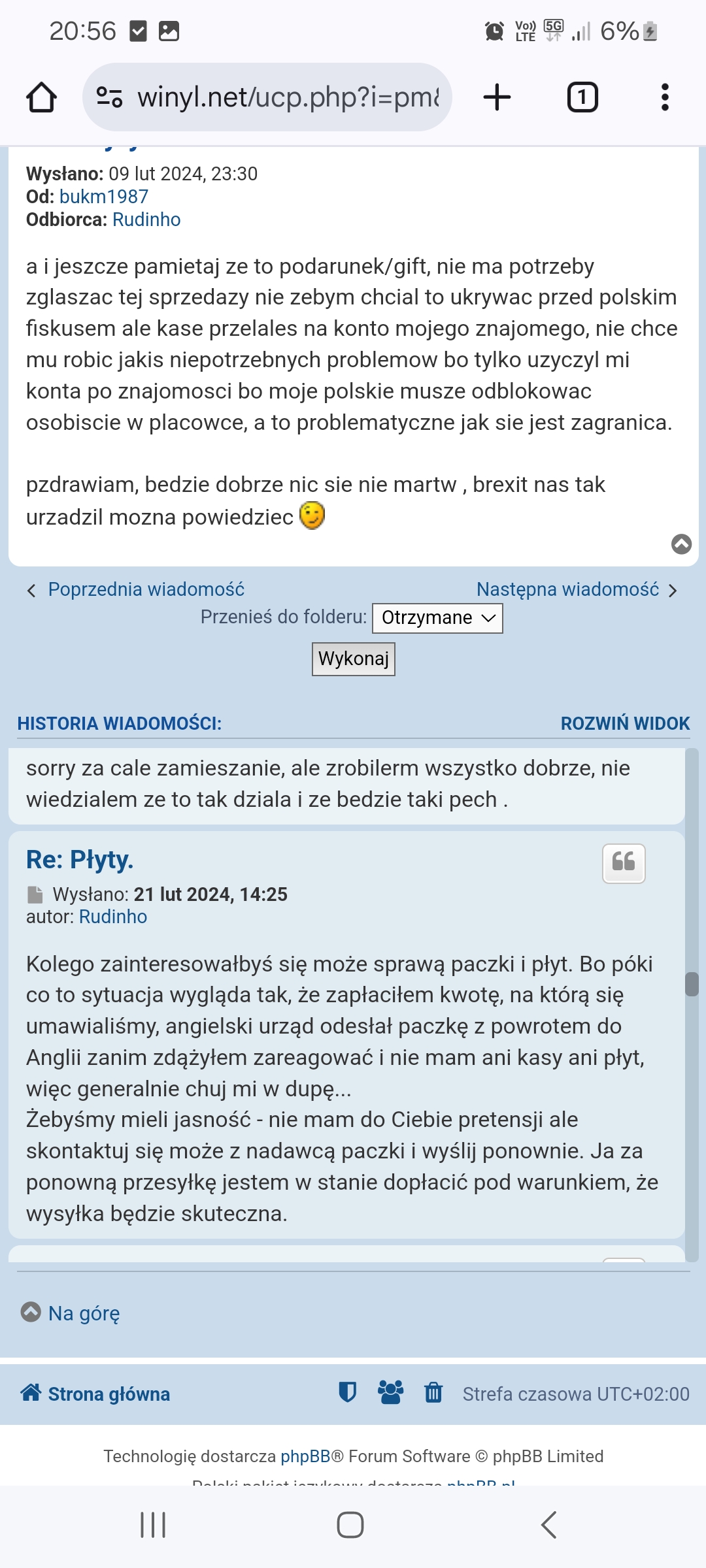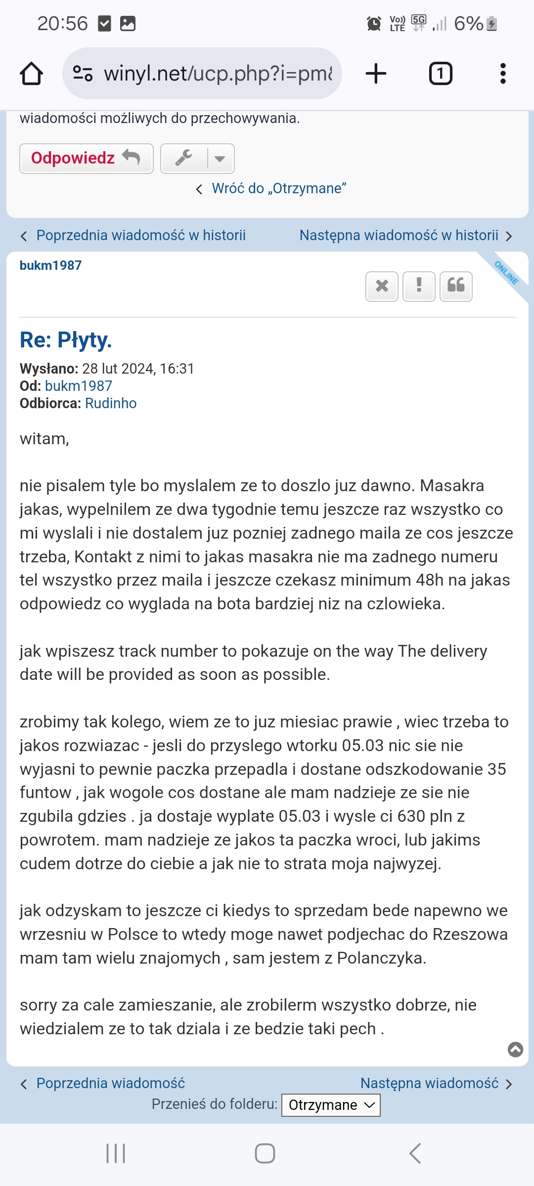 Jak nie odebrałem przesyłki to pokaż "kwity". Nic nie pokażesz ponieważ przesyłka nie opuściła UK. No chyba, że miałem odebrać w Dover to wtedy fakt, nie pojechałem i nie podjąłem. Ja jako kupujący zrobiłem wszystko jak trzeba - zapłaciłem i czekałem na przesyłkę. Jak wiadomo było, że są problemy to sam zaproponowałem inne rozwiązania. Nie wyszło. Sam pech od początku - brak dokumentów, kumpel co to wystawił, brak kontaktu. Groźby? To była uprzejma prośba - skoro racja była po Twojej stronie to dlaczego tak ochoczo wszystko, łącznie z kosztami przesyłki oddałeś? Rachunek ekonomiczny też średnio korzystny... Jechać po płyty warte 500,00 zł i ponosić koszty circa 1000,00 zł. No cóż. Ja wiadomości nie mam zamiaru czytać bo doskonale wszystko pamiętam. Tobie z serca polecam lekturę, najlepiej ze zrozumieniem. Może wyłoni się jakiś związek przyczynowo-skutkowy. A o oszustwo nigdy i nigdzie nie posądzałem. Również zagłębienie się w słowo pisane serdecznie polecam.bukm1987 pisze: ↑26 wrz 2024, 17:20130zl to na piwo , za to ze tyle czekales, nie musialem zwracac kosztow bo przesylki nie odebrales ty , poczytaj nasze pmy,faktycznie przyznaje ze dlugo to trwalo ale poswiecilem na to wiecej czasu i kasy niz ty, a te twoje smieszne grozby mogles sobie darowac, dlatego finalnie ci nie sprzedalem I juz nie sprzedam