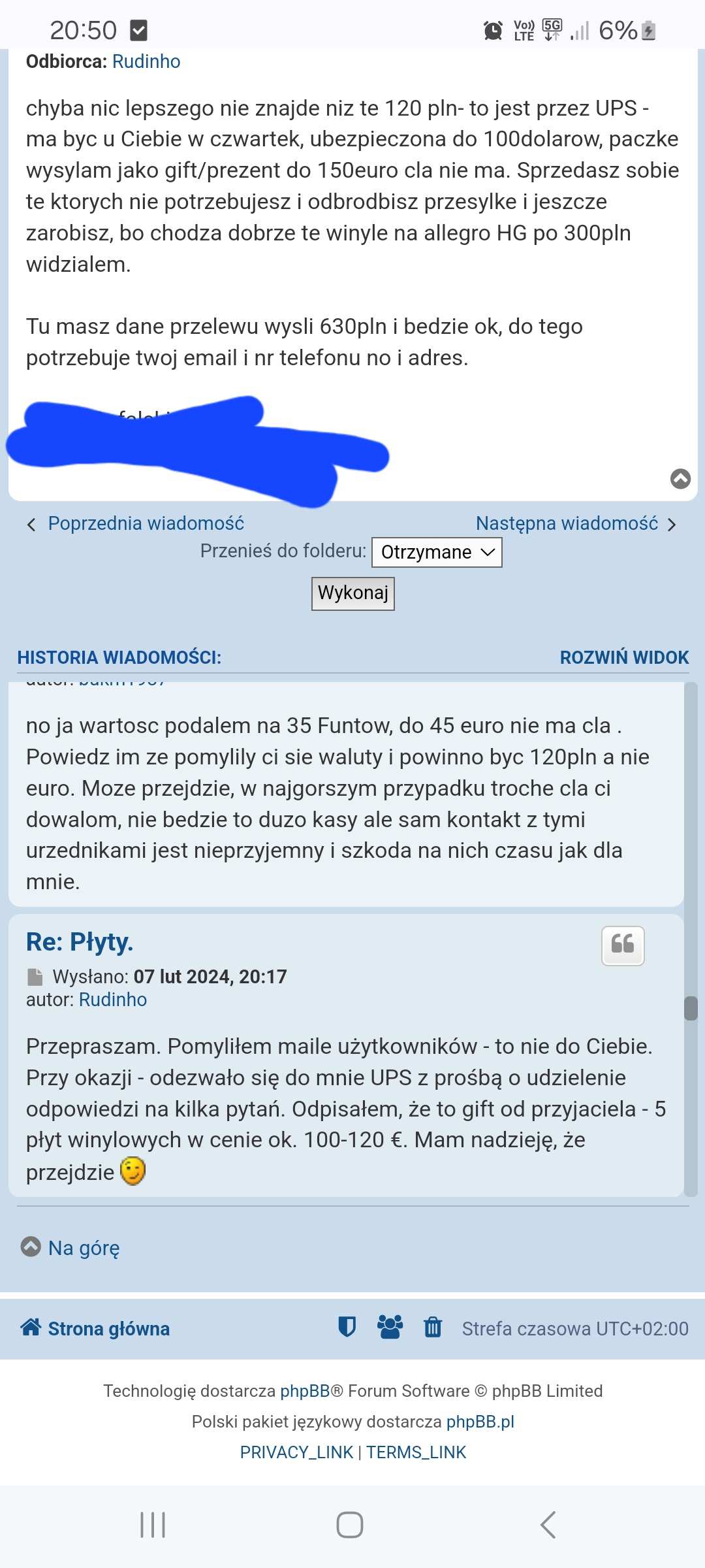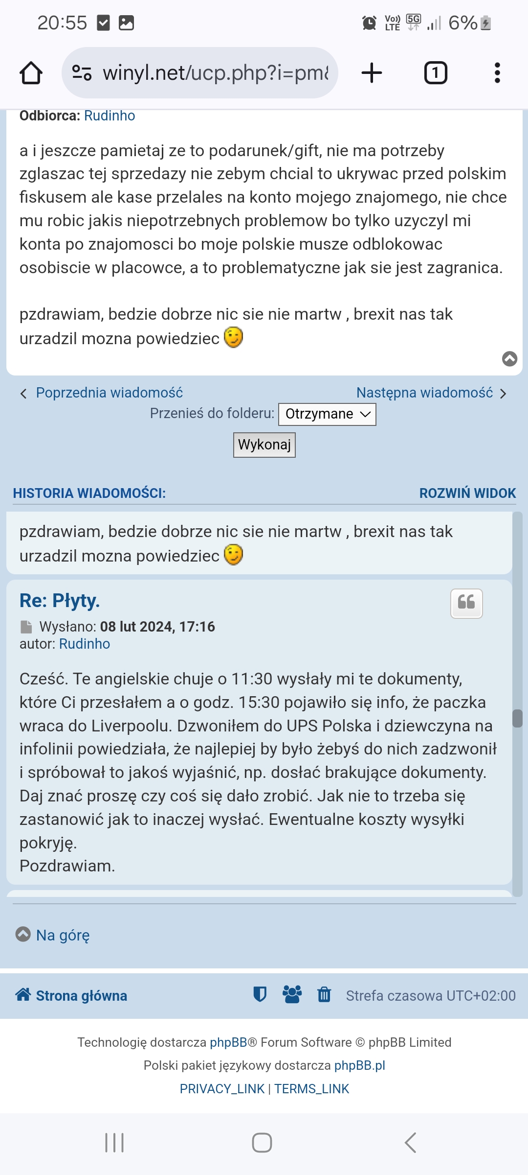 Żeby nie było niejasności: w lutym się dogadaliśmy, paczka wyszła, otrzymałem od angielskiego ups powiadomienie, że paczka do mnie idzie. Akurat byłem cały dzień w trasie jak dostałem maila, że ups oczekuje ode mnie dokumentów - potwierdzenia zakupu + coś tam jeszcze. Nic nie miałem bo transakcja odbyła się przez winyl.net ale skontaktowałem się z polskim biurem ups żeby dopytać co zrobić w takiej sytuacji. Miła pani konsultant poinformowała mnie, że od czasów brexitu mocno się popierniczyło, więc najlepiej żebym skontaktowal się z nadawcą, on wypełni jakąś tam deklarację i sytuację da się odkręcić. Skontaktowałem się przez priv. Następnego dnia przyszła informacja, że paczka wróciła do sortowni ups. Tak się Angole pospieszyli. W międzyczasie na priv obgadaliśmy inne możliwości rozwiązania problemu. Naprawdę byłem gotowy ponieść dodatkowe koszty. Nie wyszło... Kontaktu brak, płyt brak, kasy brak...