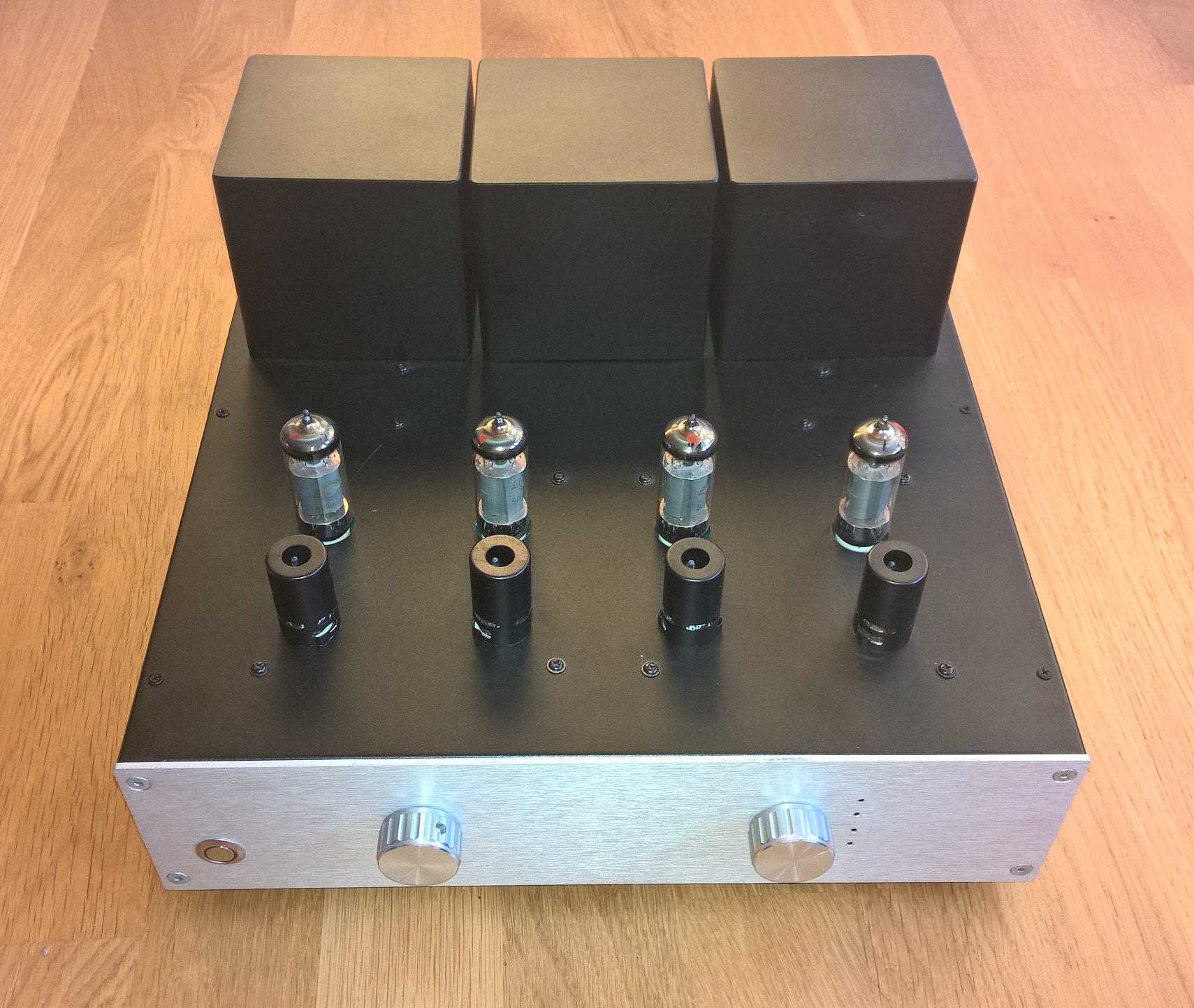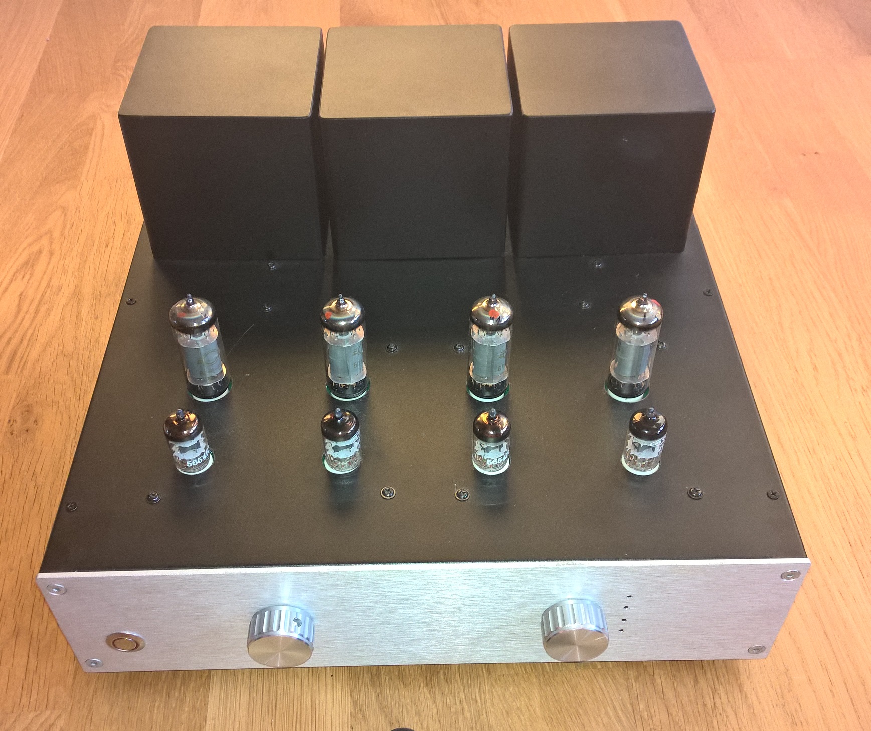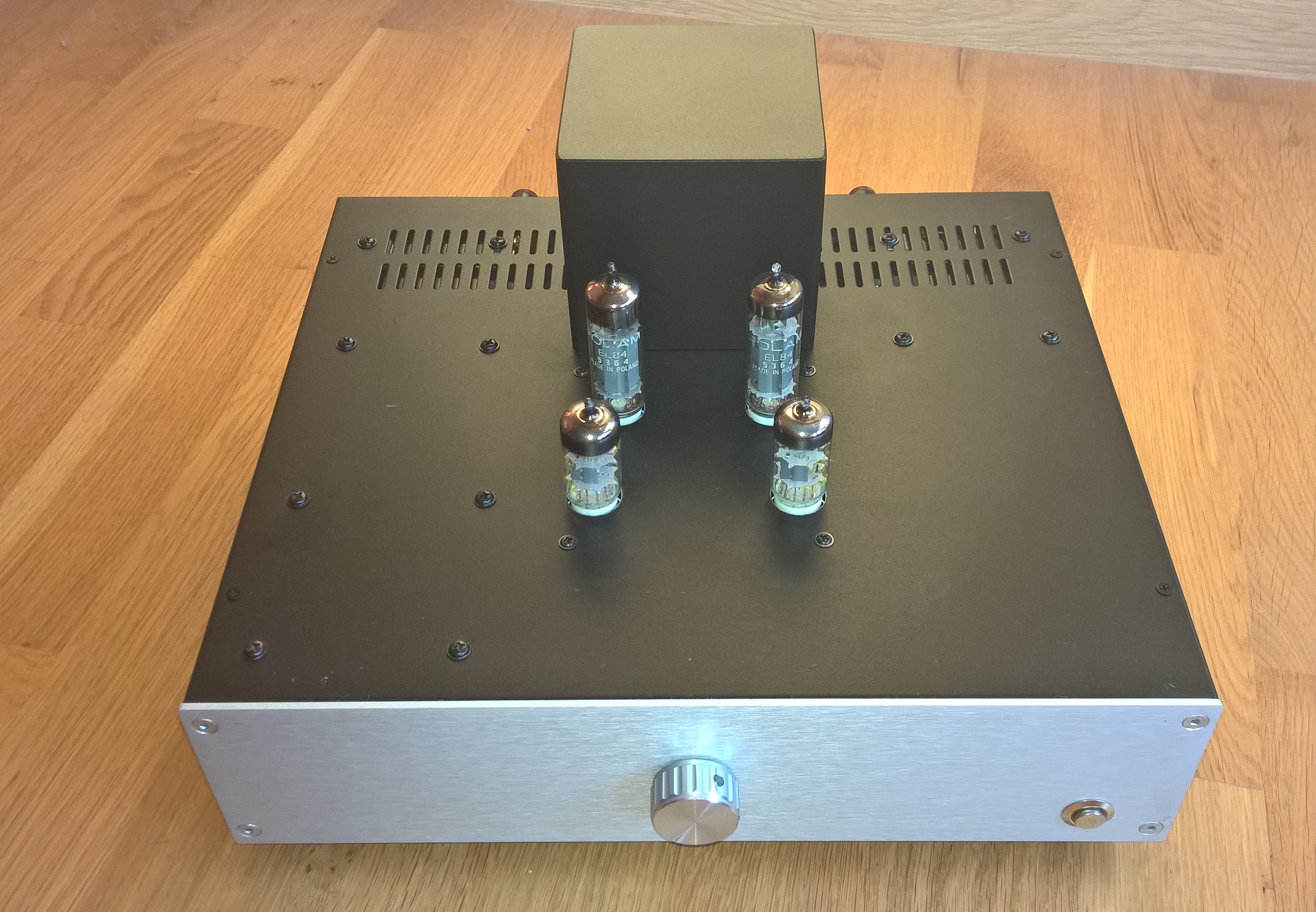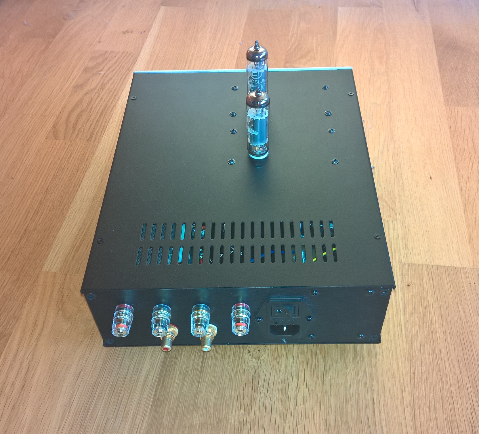 Lampy 6n2p + 6p14p (Rosyjskie wersje wojskowe o podwyższonych parametrach odpowiednik ECC83 i EL84 NOS). Obudowa z Modusa.