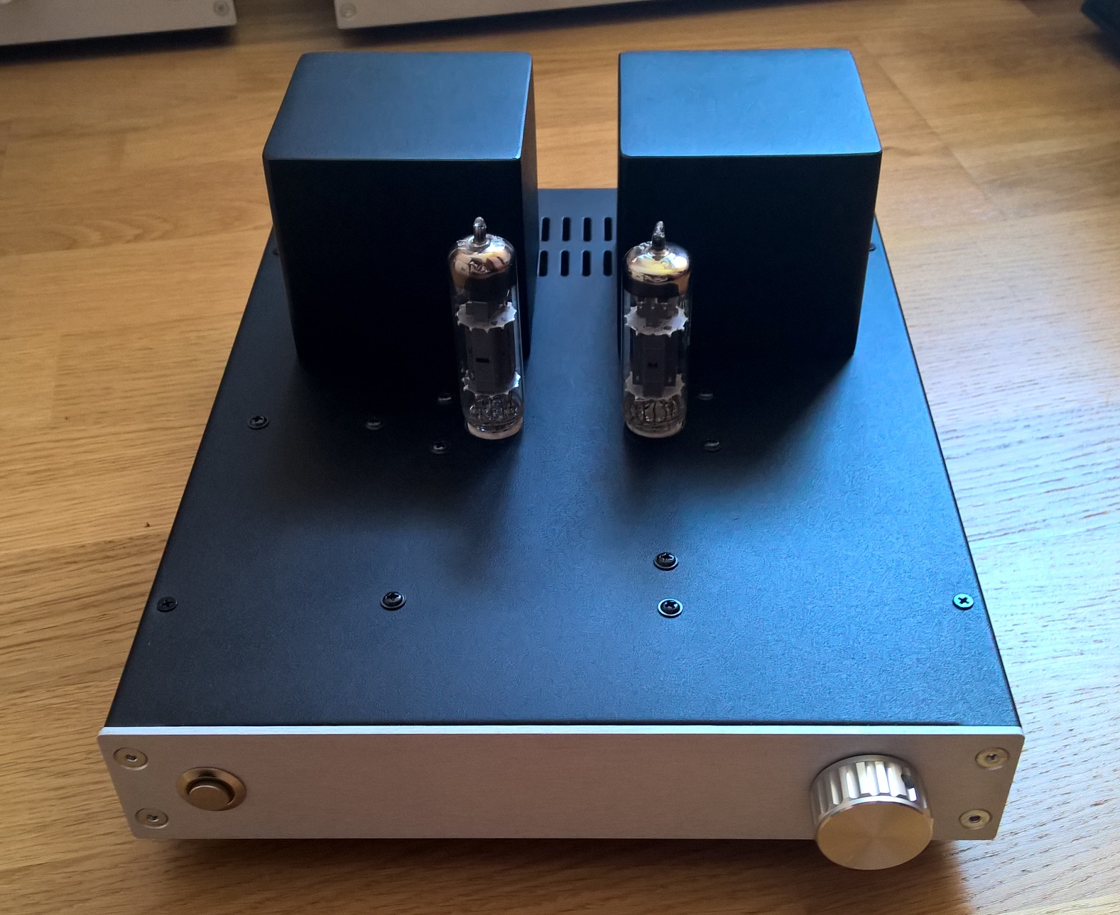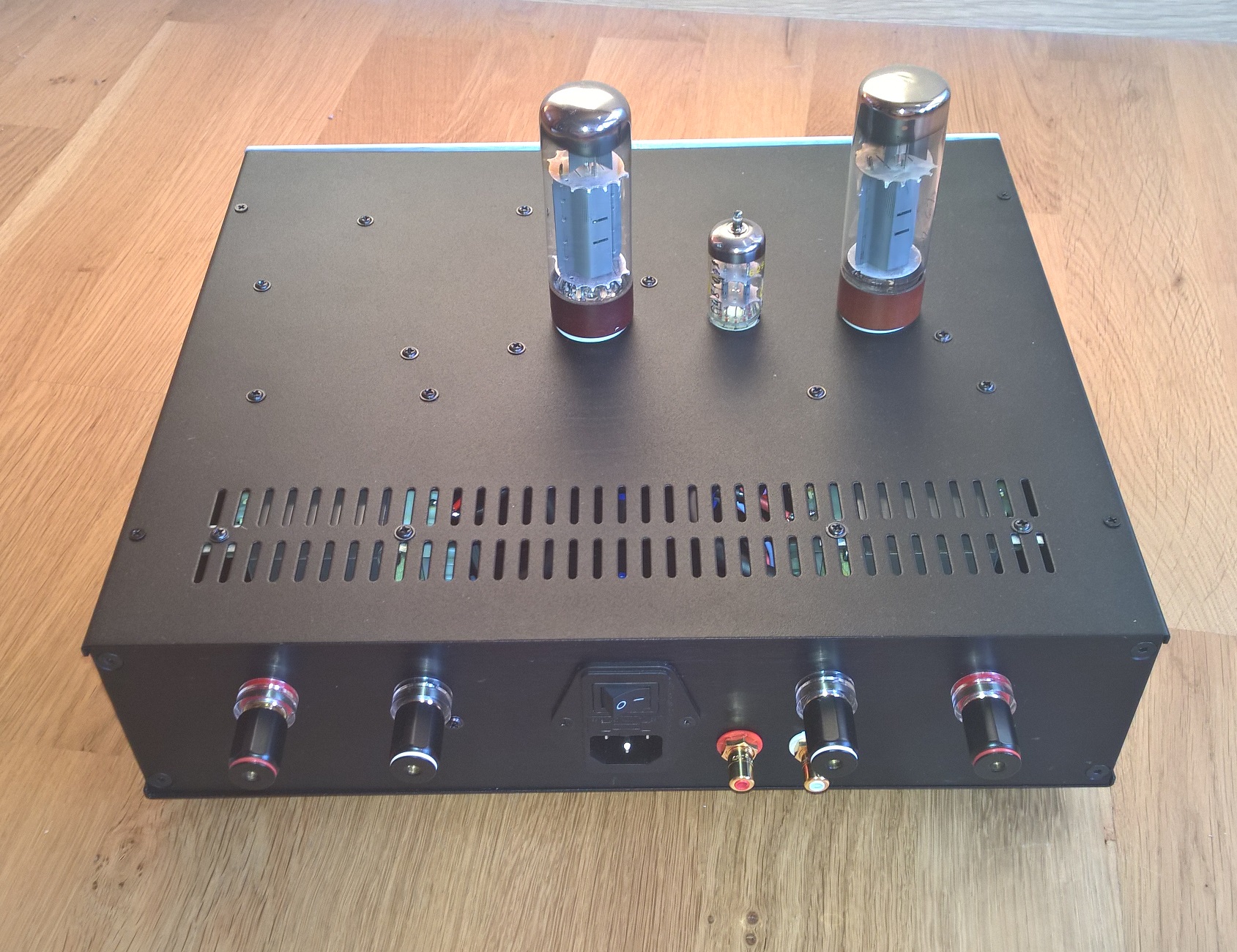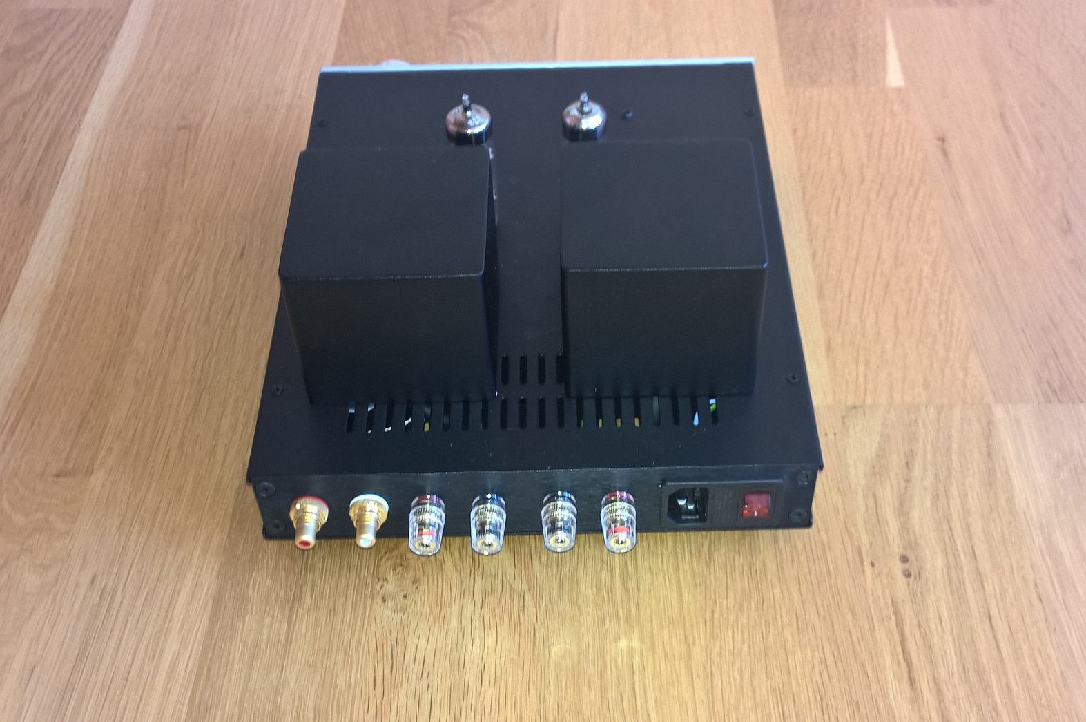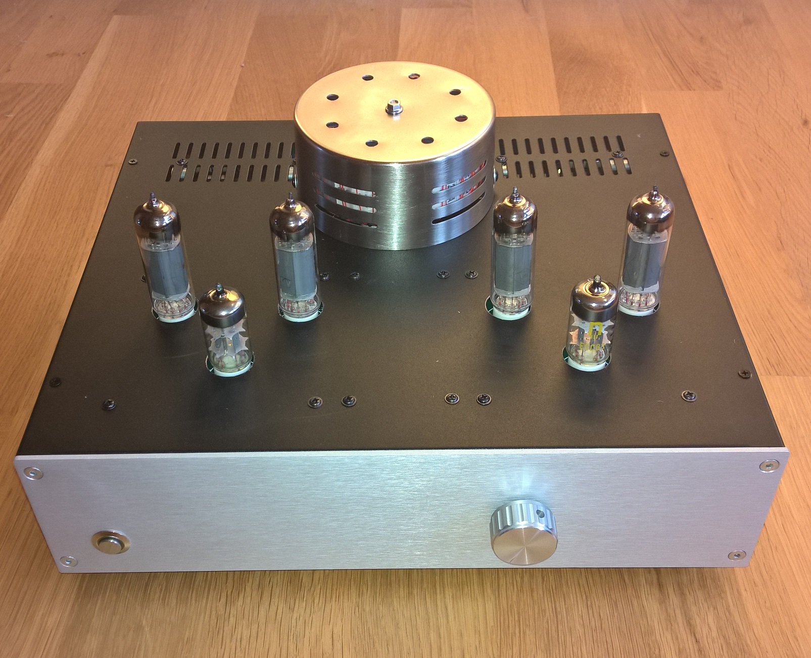 Lampy 6n2p + 6p14p (Rosyjskie wersje wojskowe o podwyższonych parametrach odpowiednik ECC83 i EL84 NOS). Obudowa z Modusa.