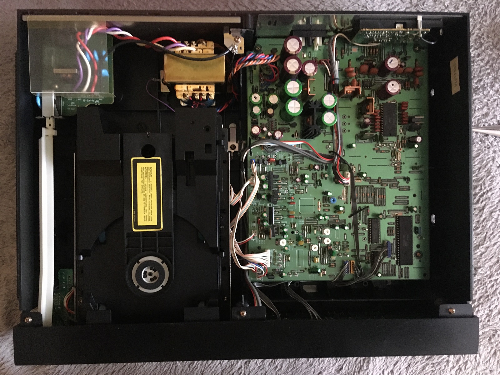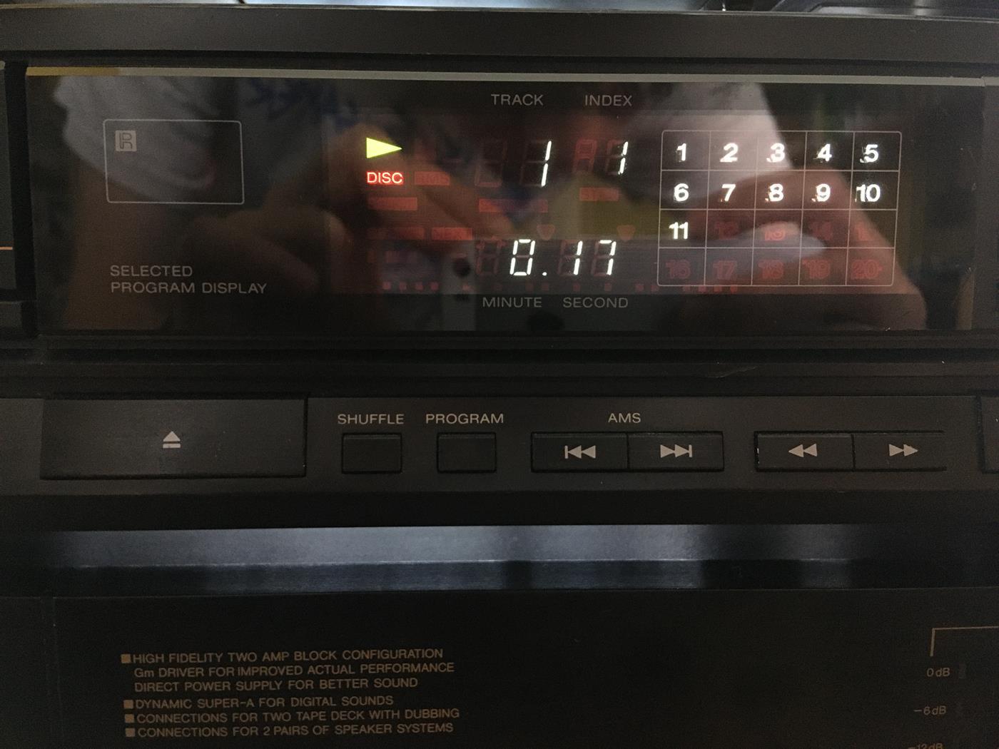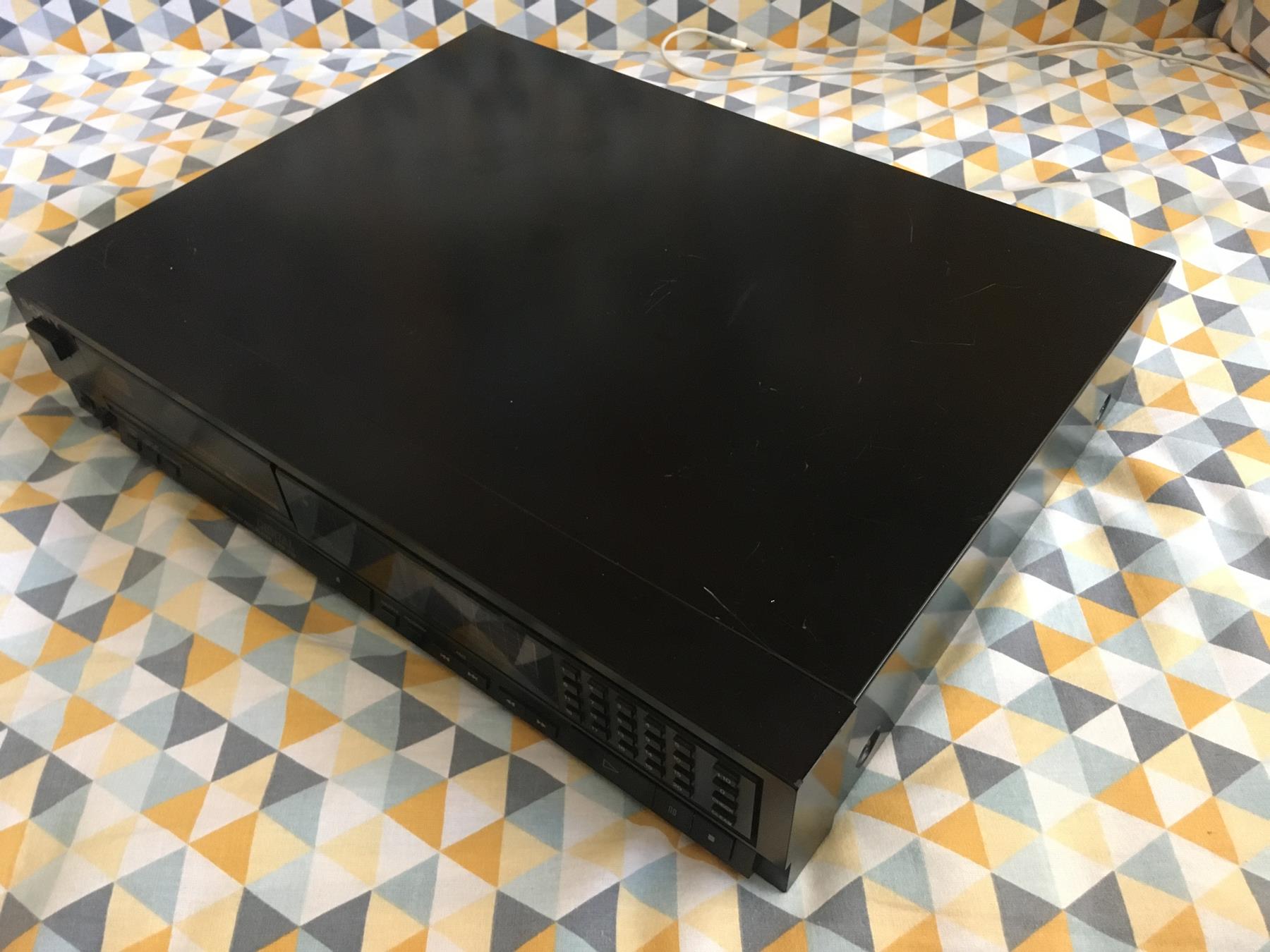 Od roku stoi wprawdzie na mojej szafie, ale wczoraj go zdjąłem, podpiąłem i sprawdziłem ponownie wszystkie funkcje - nie ma się do czego przyczepić, może oprócz rys na górnej pokrywie. Wyświetlacz sprawny, wszystkie przyciski sprawne, napęd i odczyt OK. Najfajniejsze w nim jest chyba wygodne programowanie z klawiaturki i możliwość wyświetlenia wielu danych, jak czas utworu i całej płyty do przodu i do tyłu.