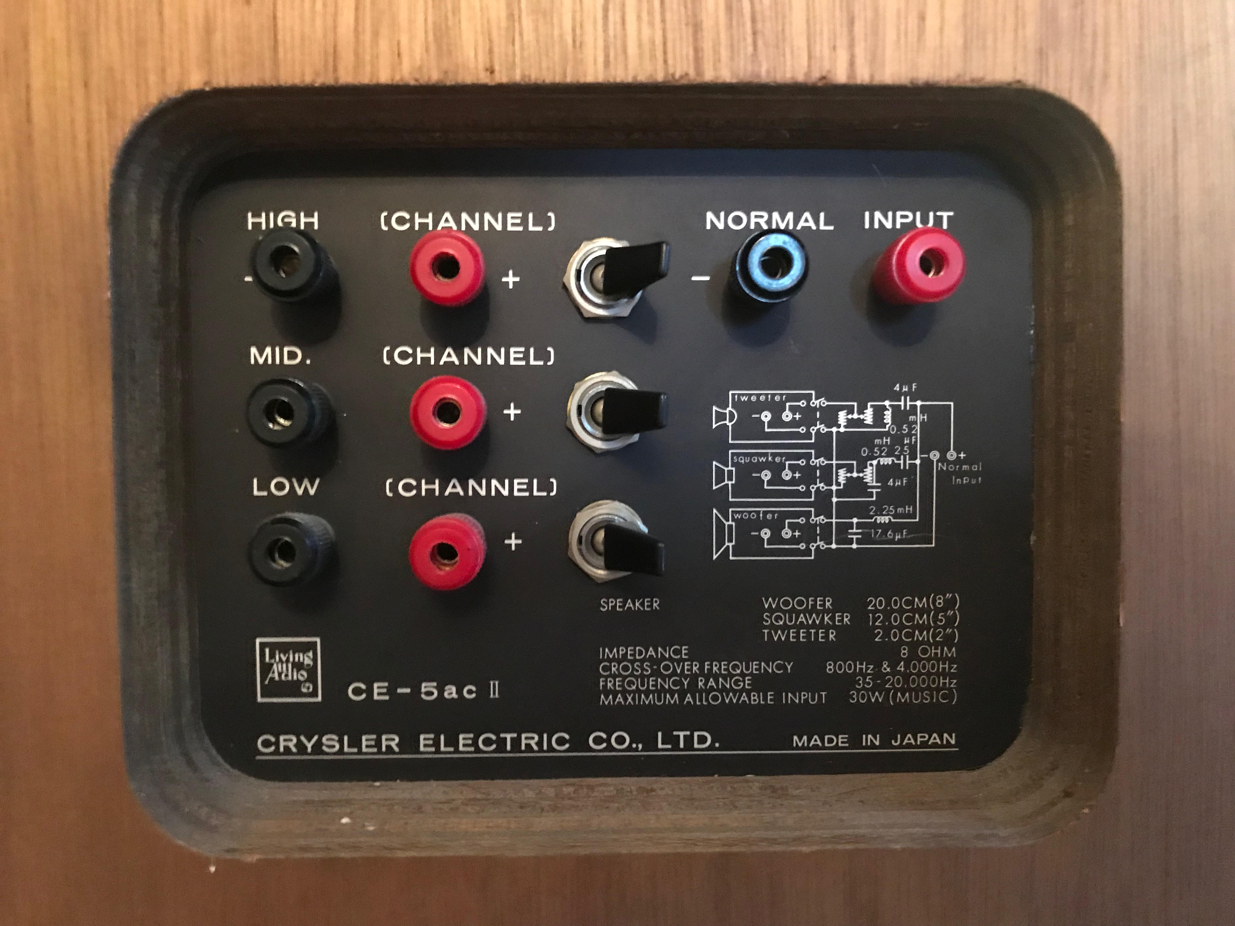 Najwyższy model monitorów japońskiej marki Crysler Living Audio CE-5ac II , charakteryzujacy się głosnikiem basowym z dwoma antenkami, ale przede wszystkim żółtym przetwornikiem średnio tonowym, który przepięknie odtwarza wokale i oddaje barwę instrumentów. Jest to model z bardzo rozbudowaną zwrotnicą - możemy się wpiąć bezpośrednio w każdy głośnik.