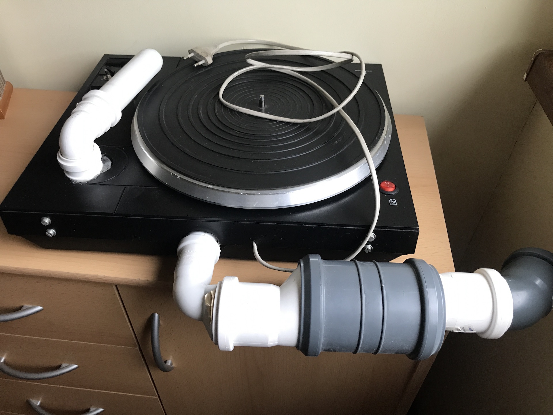 Myjka samoróbka na bazie gramofonu. Dorobiony system ssąco-tłoczący.