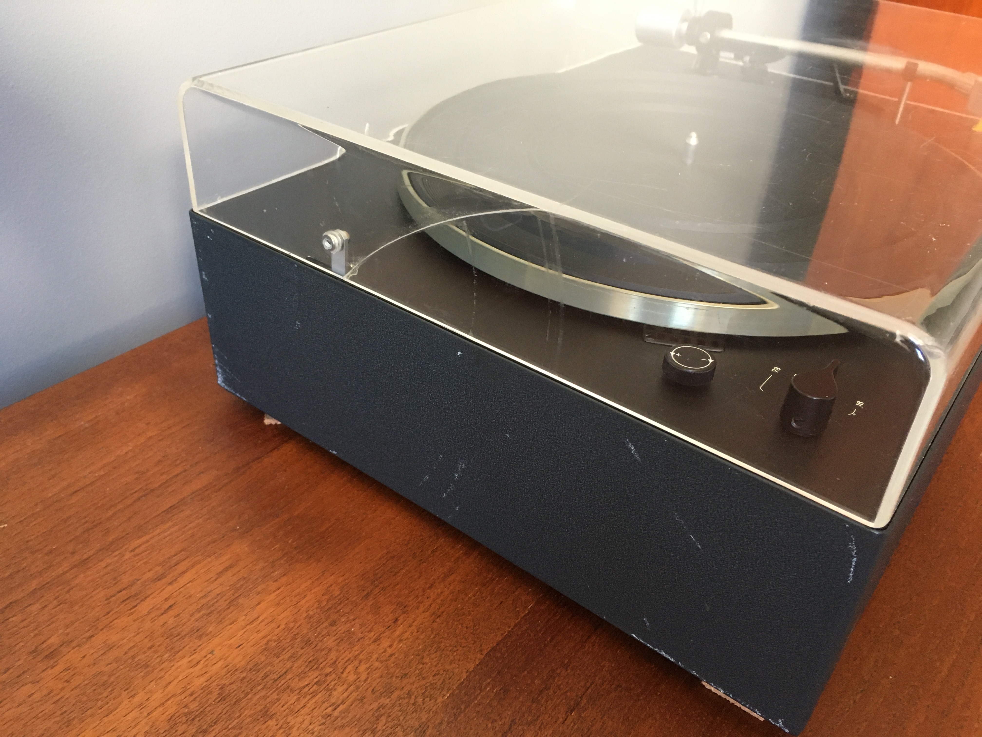 Kupilem go bardzo niedawno od pierwszego wlasciciela w Niemczech i zostal przywieziony przez zaprzyjaznionego kierowce bezposrednio. Z informacji, ktore dostalem od wlasciciela jest po profesjonalnym przegladzie technicznym. Rzeczywiscie wszystko dziala jak trzeba. Wszystkie funkcje sa sprawne, lacznie z wylacznikiem koncowym. Gramofon lapie i trzyma obroty, ramie opuszcza i podnosi sie prawidlowo, nie ma luzow. Sprzedaje, poniewaz kupowalem caly zestaw z kolumnami LV 720 a wlasciciel nie chcial rozdzielic elementow. Kupowalem dla kolumn, mam juz swoj egzemplarz PS500.