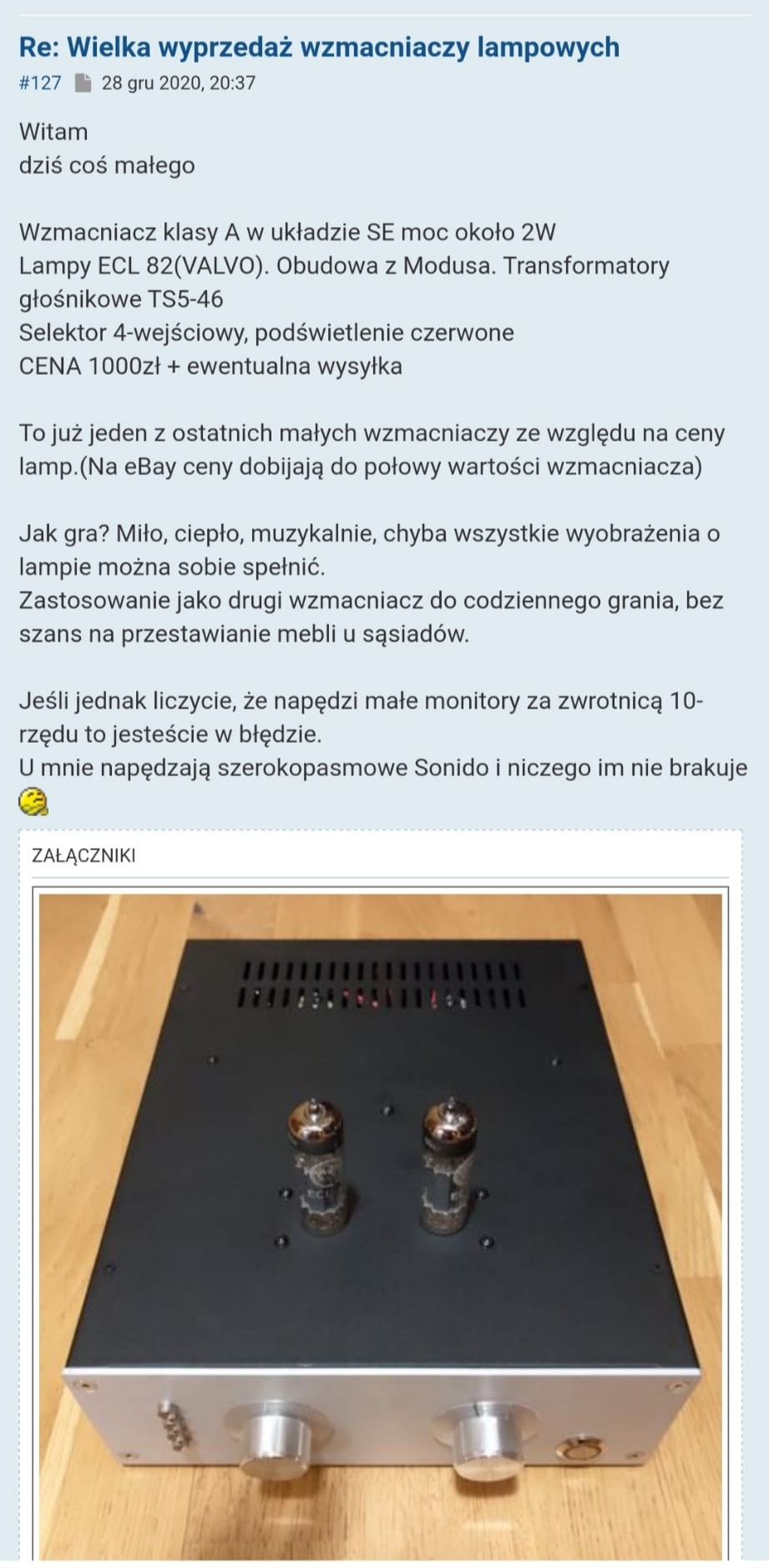 Sprzedaje gdyż wymienił swoje kolumny na Atl hd 310i i niestety nie są to kolumny do tego typu wzmacniacza. Dodam tyle że u mnie na Coralach fajnie pograł pełna sceną i dynamiką. Cena jaka go interesuje to 900pl + ewentualna wysyłka.