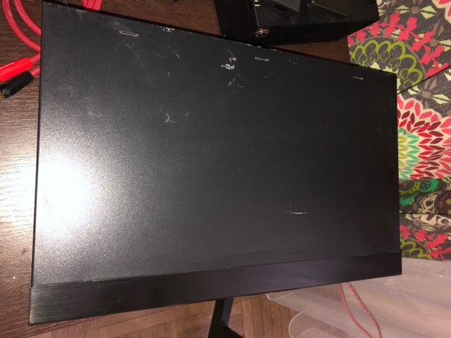Stan wizualny średni - górna pokrywa porysowana i w jednym miejscu delikatnie wgnieciona