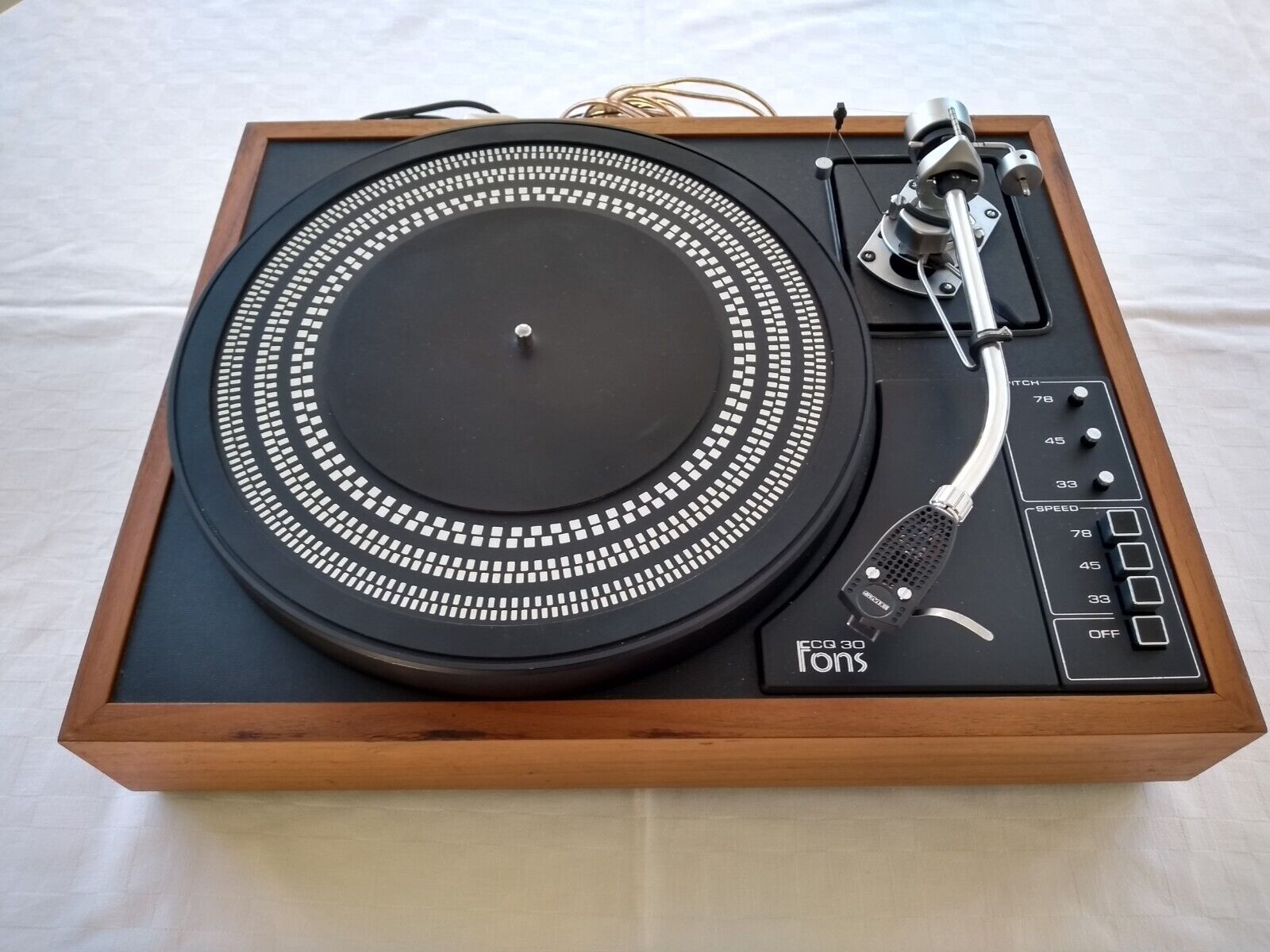 Sprzedam Gramofon Fons CQ30+ ramię SME 3009 S2+Ortofon VMS 20E mk2 Pokrywa do wymiany popękana klejona, kabel od ramienia nie jest oryginalny. Gramofon sprawny ,ramie w bardzo dobrym stanie.
