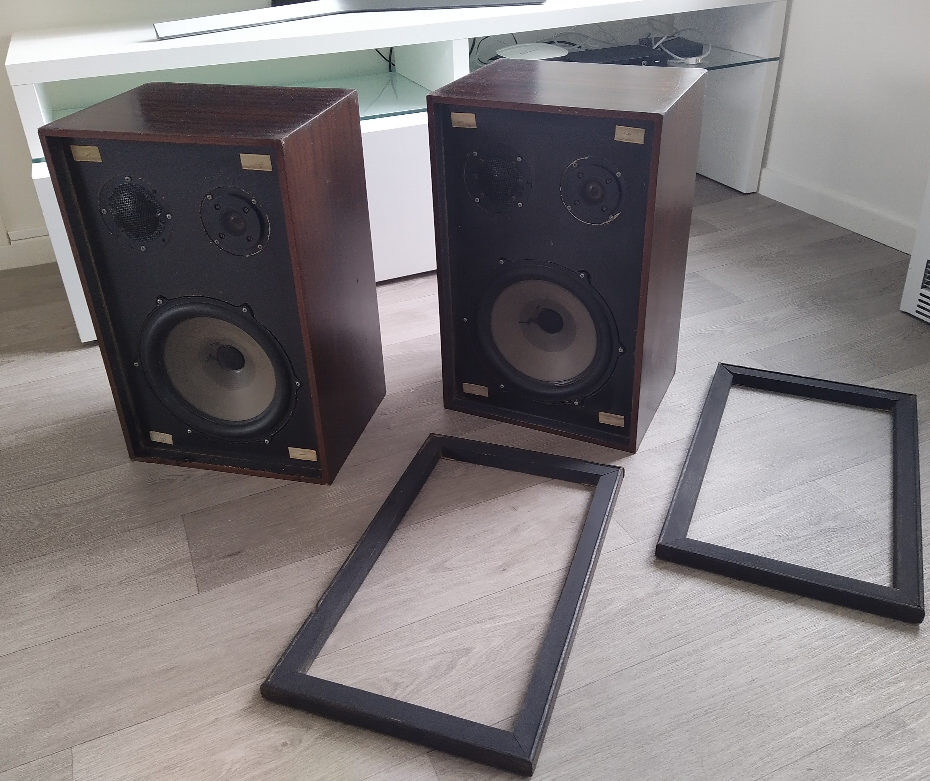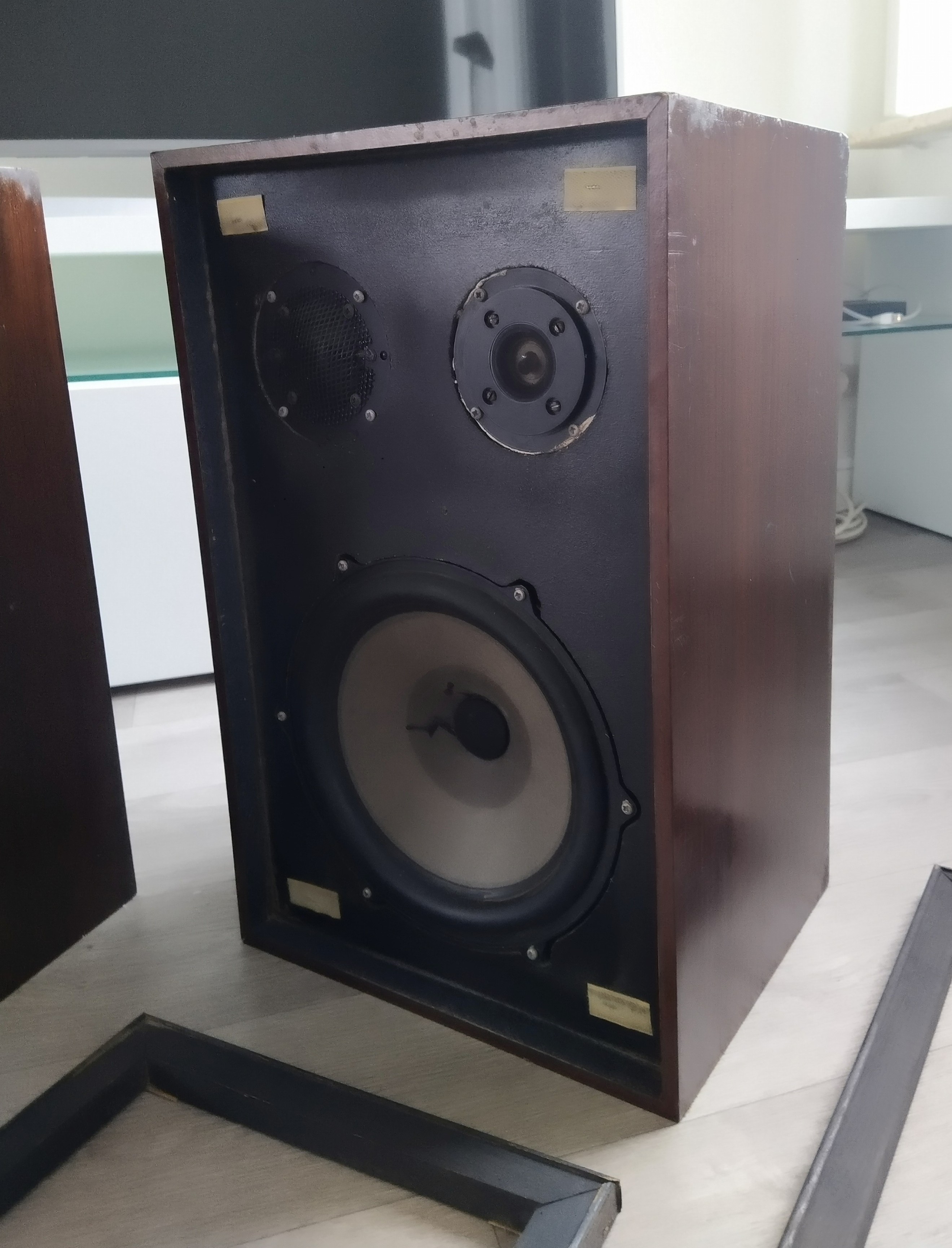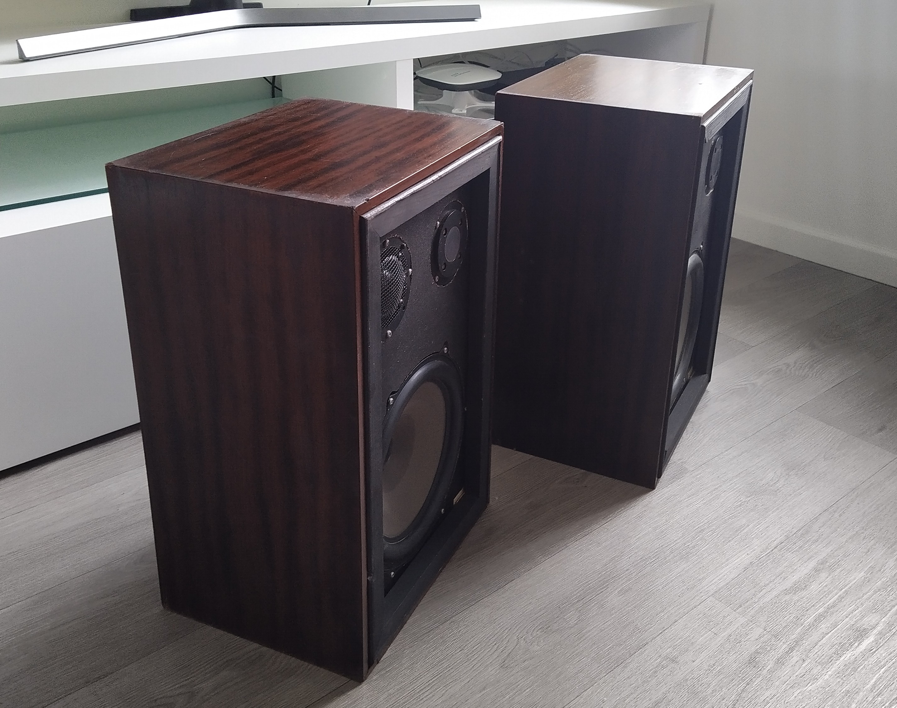 Oferuję belgijskie kolumny z 1973roku. Kolumny sprawne, wszystkie głośniki grają ciepło i pięknie, membrany w bardzo dobrym stanie. Obudowy wymagają renowacji, z braku czasu nie doczekały się tego. Kolumny stały cały czas w mieszkaniu, nie na żadnych strychach czy piwnicach. Są ciężkie wymiary: