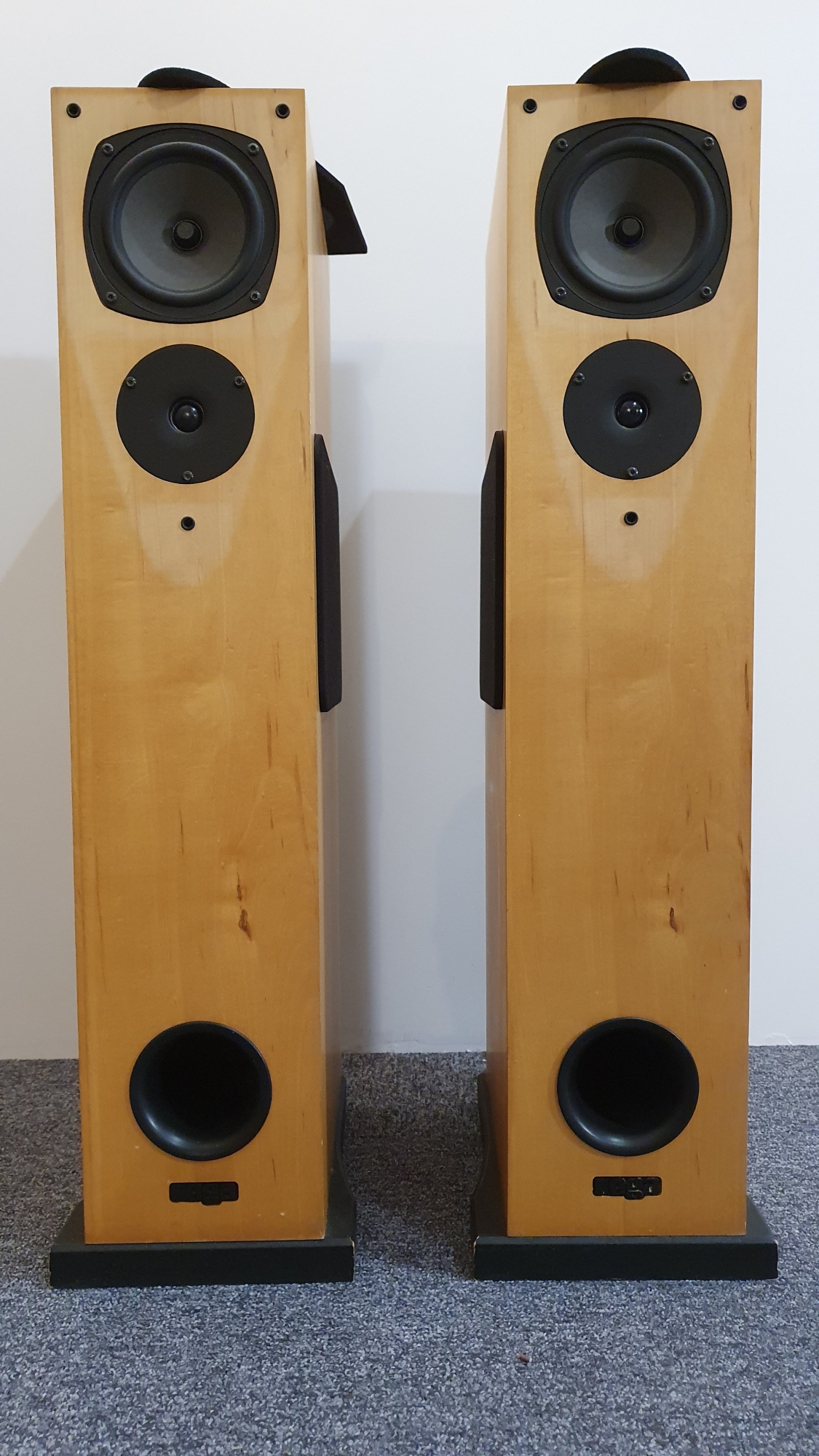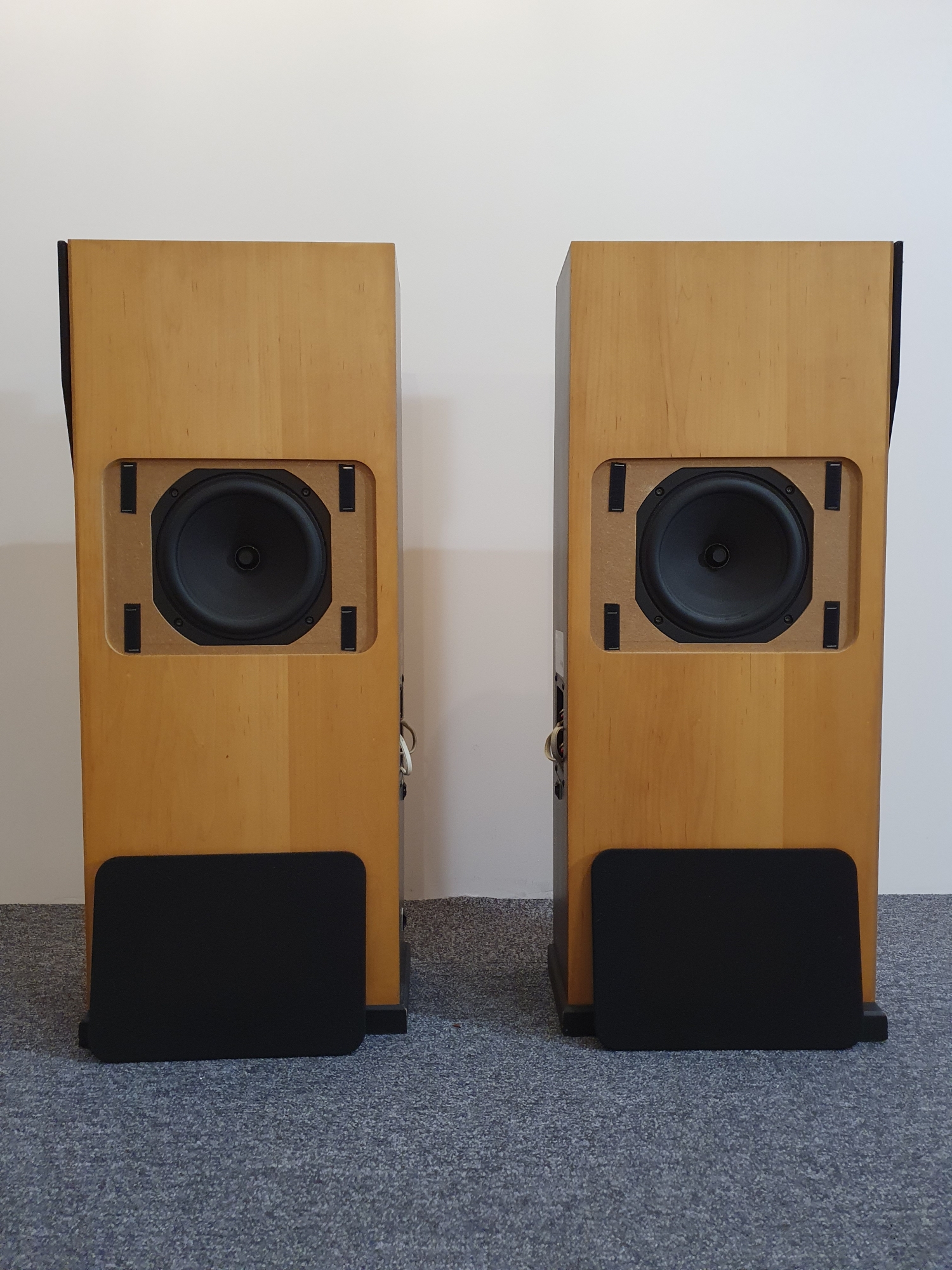 Stan wizualny widać na zdjęciach. Piękna drewniana okleina (chyba klonowa lub brzozowa), stolarka na wysokim poziomie. W zestawie oryginalne maskownice.