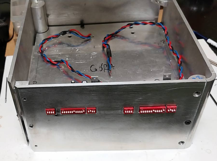 Następnie wykonałem ręcznie otwory pod dipswitche. Oczywiście przymiarki modułów, otwory montażowe itd.