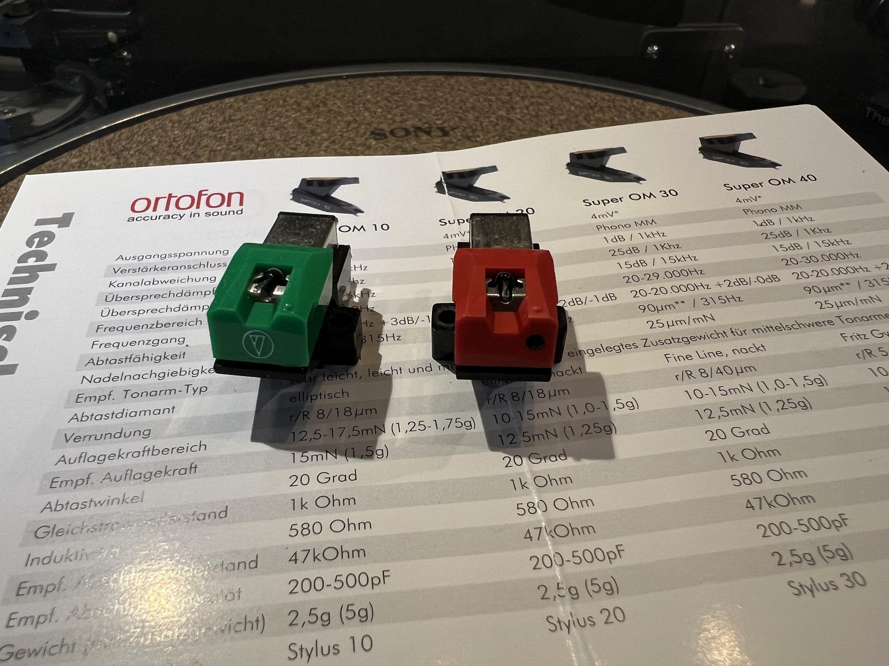 Ortofon Cadenza Black,Rohmann,SPU E GM Gold Pickering XSV3000 Sony XL-45 XL-55