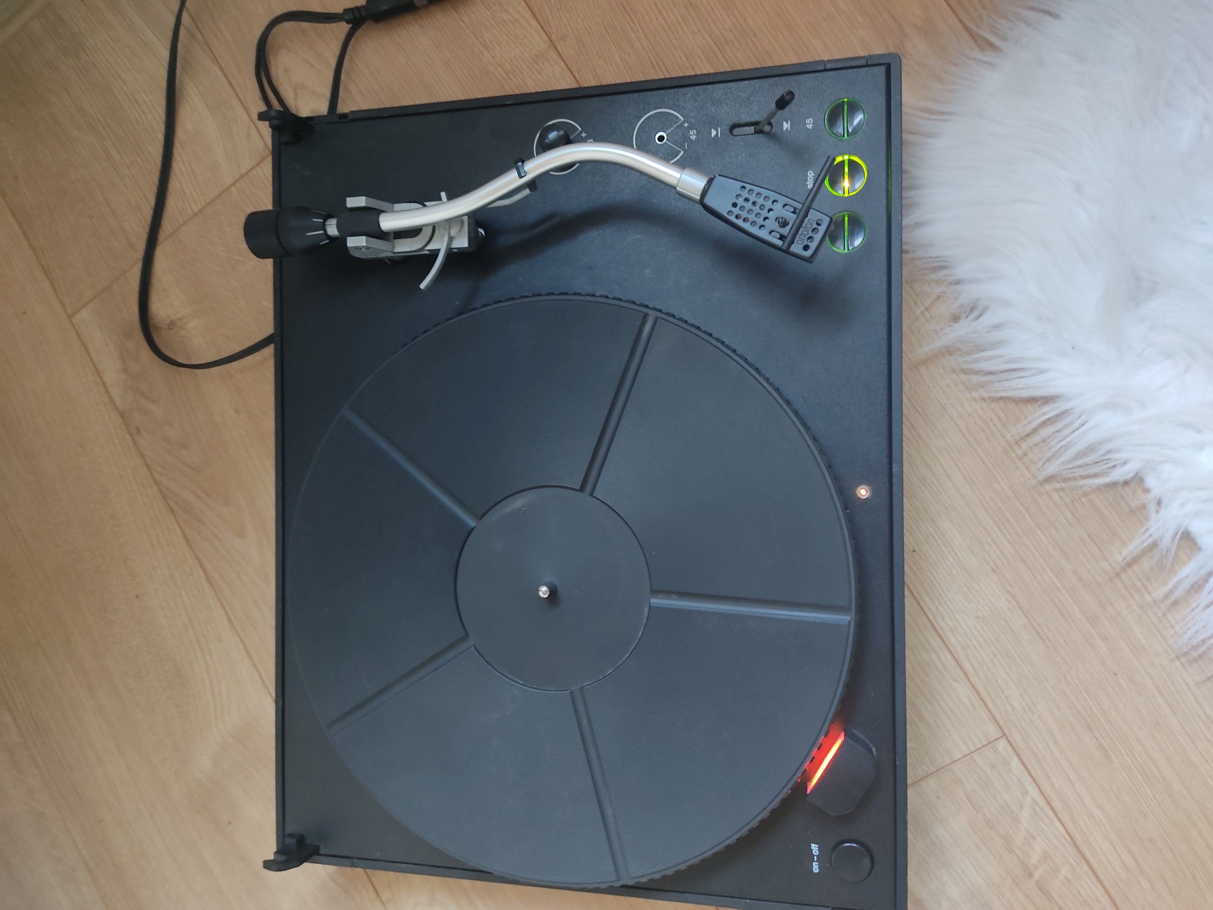Na tą chwilę gramofon działa, wszystkie funkcje są sprawne (nie sprawdzałem stabilizacji obrotów 45 z wiadomych przyczyn - ale pokrętło od 33 działa i obroty się reguluja). Sensory są ok, pokrywą cała nie popękaną ale oczywiście do polerki jest, zawiasy te które wystają z obudowy są cale.