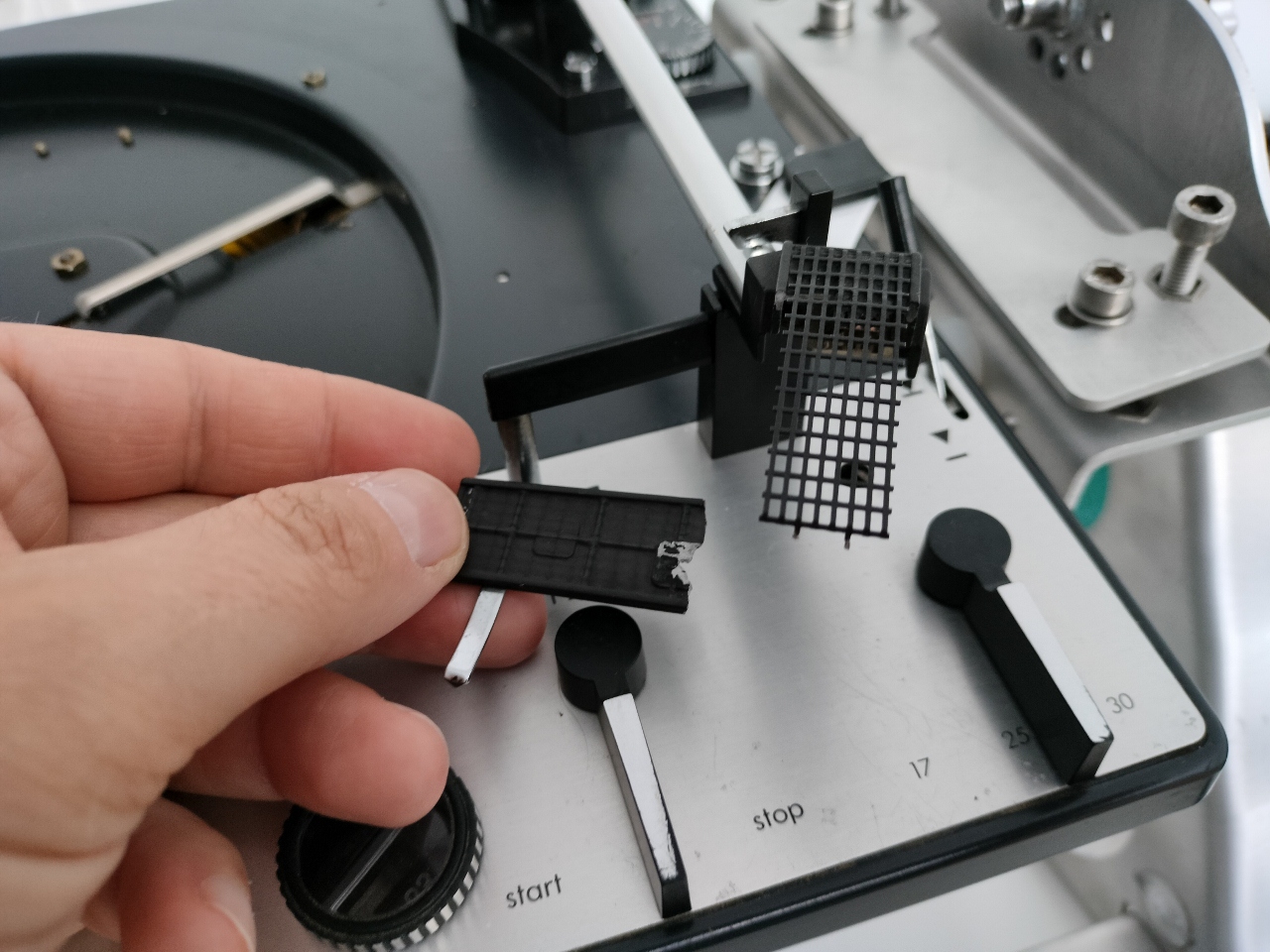 Przy okazji jak miałem na stole Duala 731Q to nabyłem, myślę dość okazyjnie, oryginalny zestaw adaptera pod montaż wkładki 1/2 cala. Zestaw często poszukiwany a z racji tego, że nie jest jakimś częstym bywalcem na portalach aukcyjnych, to ceny osiąga trochę absurdalne. Pasuje też rzecz jasna do półautomatycznego Duala 714Q.