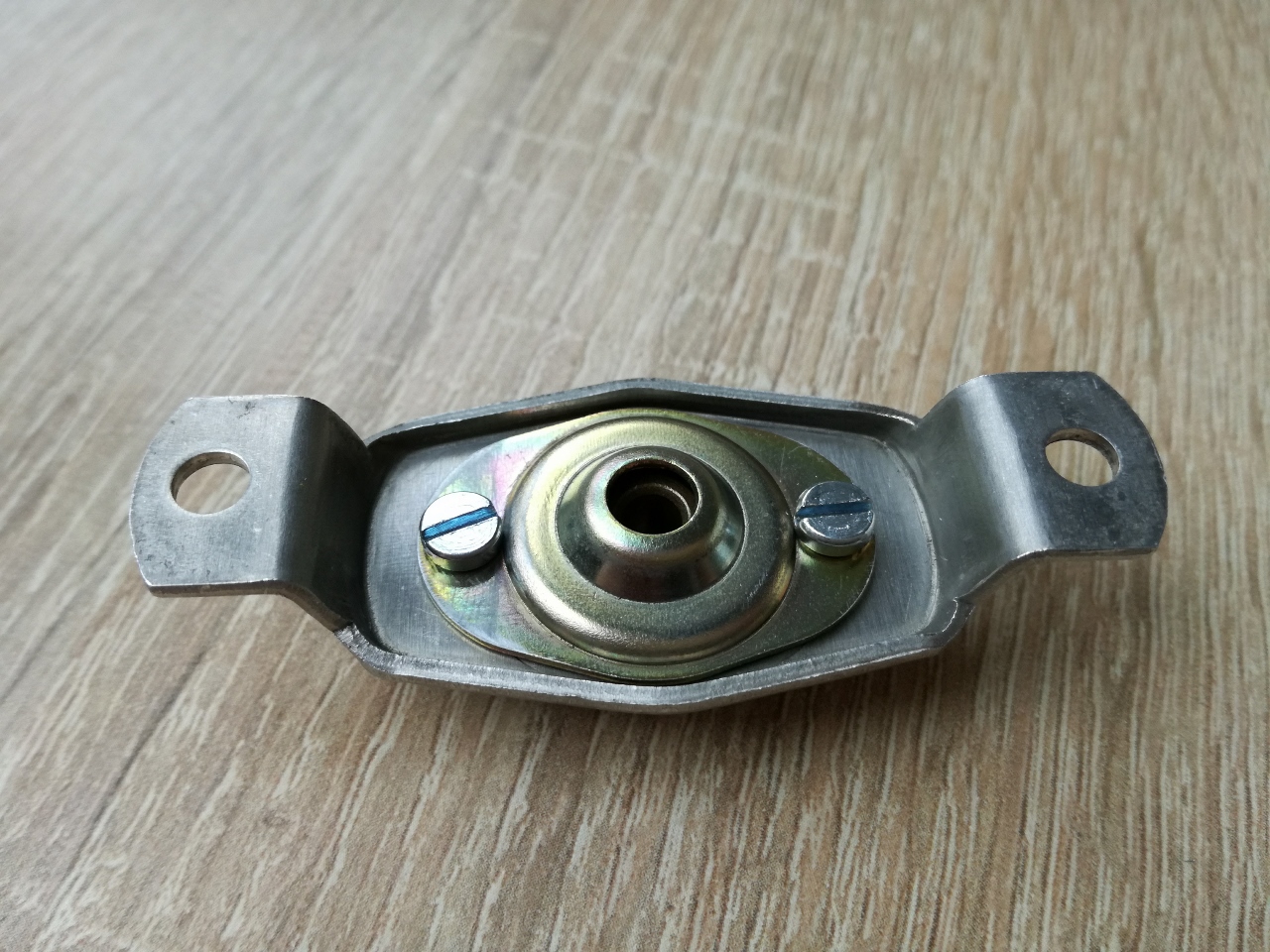 Dolne łożysko. Otwieramy. Wiertło 3mm i przewiercam 2 fabryczne nity, żeby się dostać do środka: