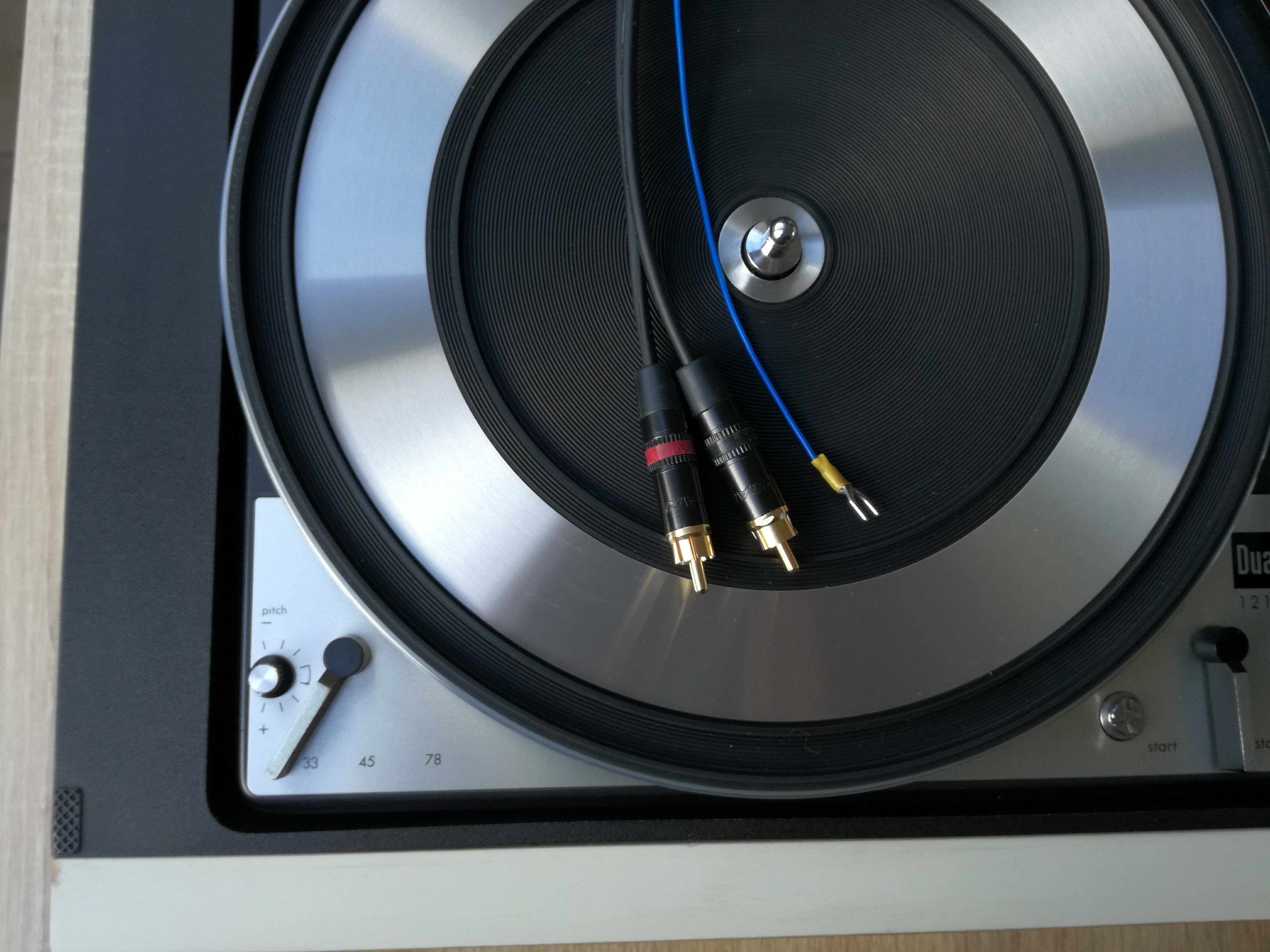 W sumie u mnie już ostatki. Ostatnie dni to głównie regulacja. Skasowałem luzy na ramieniu. Tak w ramach ciekawości to Dual zaleca minimalny, wyczywalny luz na ramieniu. Wymieniłem okablowanie. Kabel Sommera + wtyki Neutrik Rean. Osobno kabel uziemiający. Zastanawiam się jeszcze nad Amphenolami. Musiałem podregulować obroty bo nie dało rady poprawnie ustawić po zabiegach z łożyskiem silnika. Na pozostałości po jakimś filcu założyłem gumowe nóżki. Co prawda to opcja budżetowa ale zawsze trochę wytłumi drgania