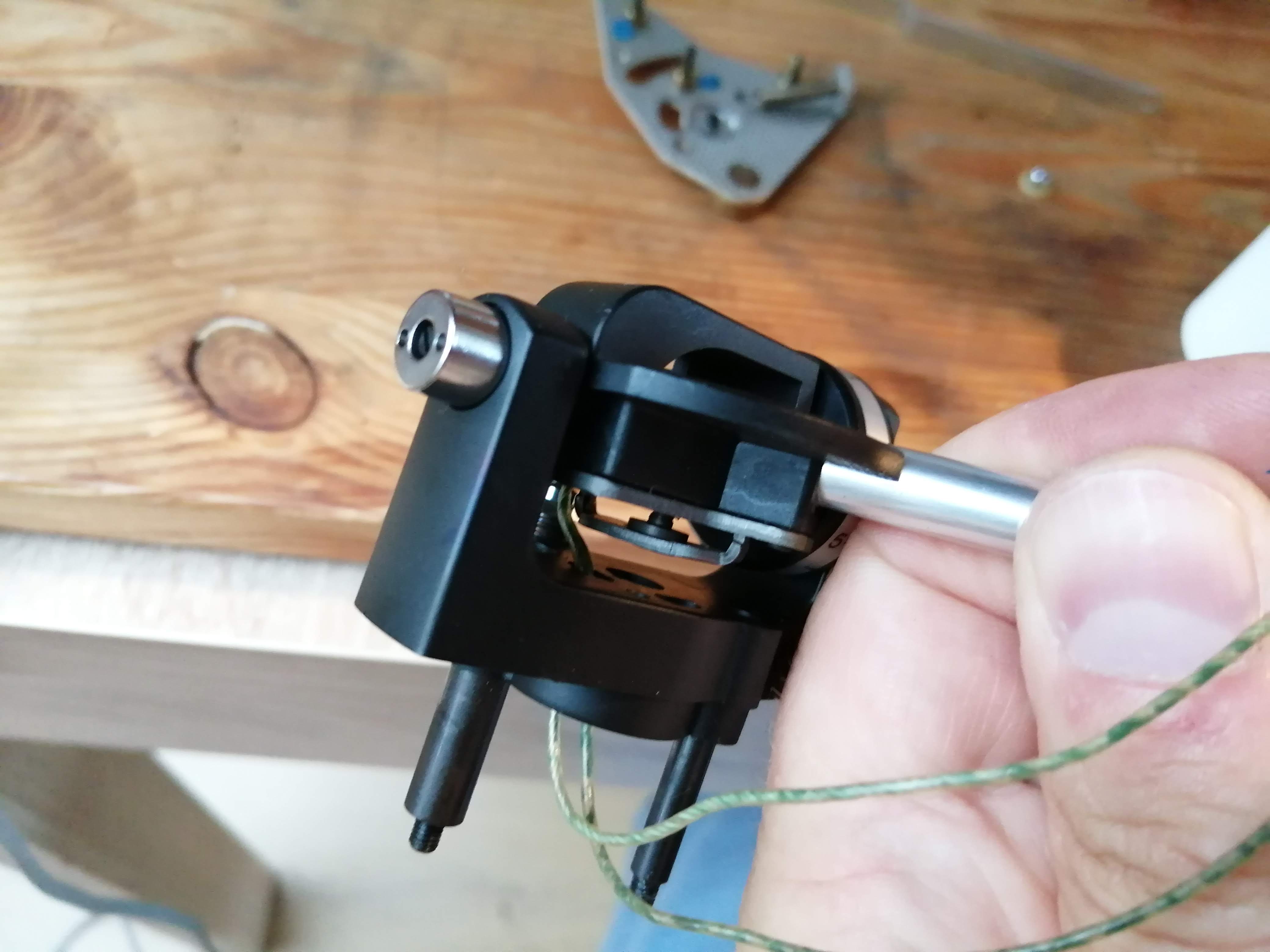 Sprawdziłem w swoich materiałach i Dual 701 drucika uziemienia jeszcze nie posiadał. Sam nie wiem co to. Chciałabym powiązać te resztki drutu z zarysowaną tuleją łożyska, ale jakoś nie wydaje mi się, aby to było możliwe. Wszak tam praktycznie nie ma miejsca.