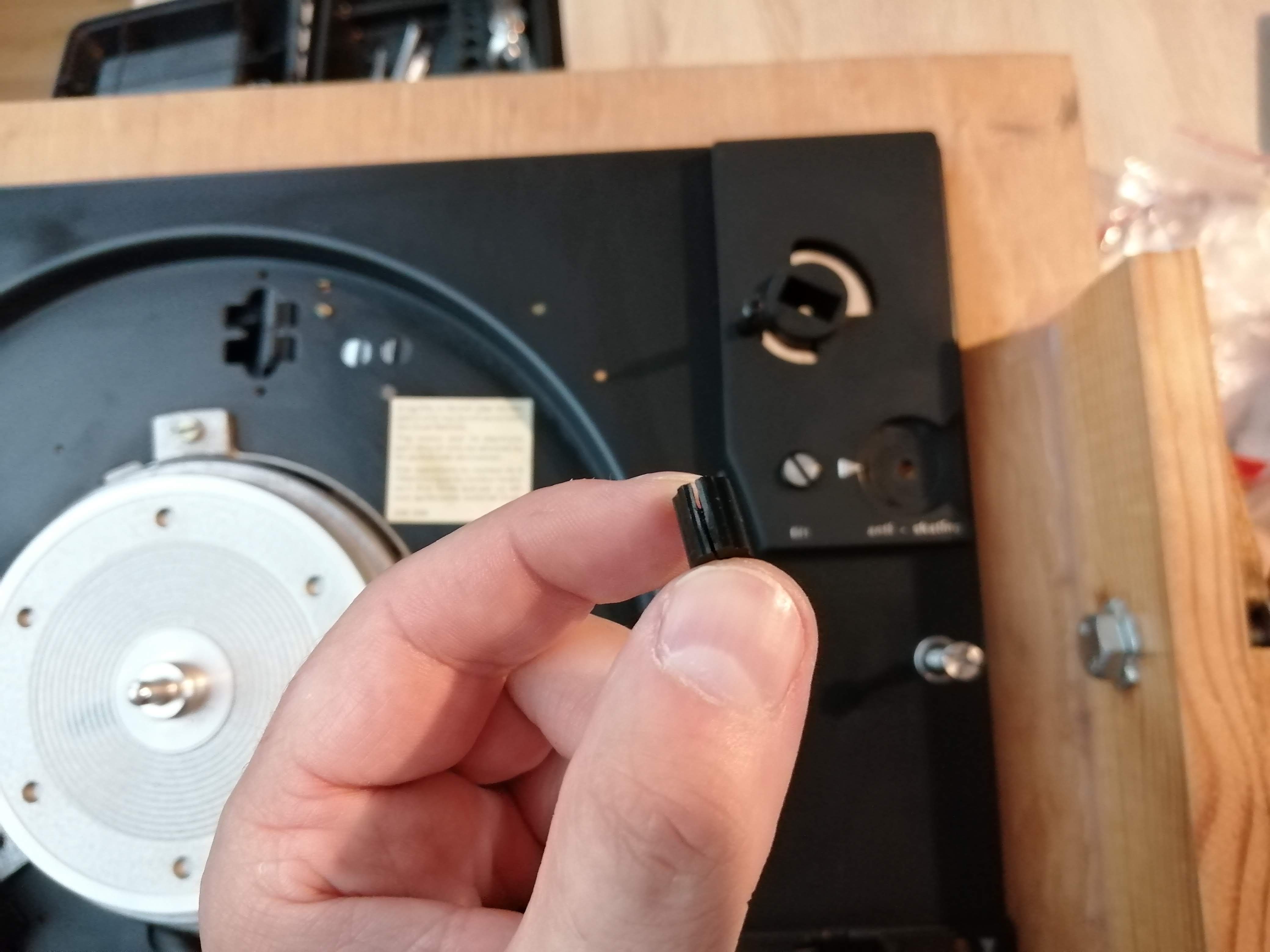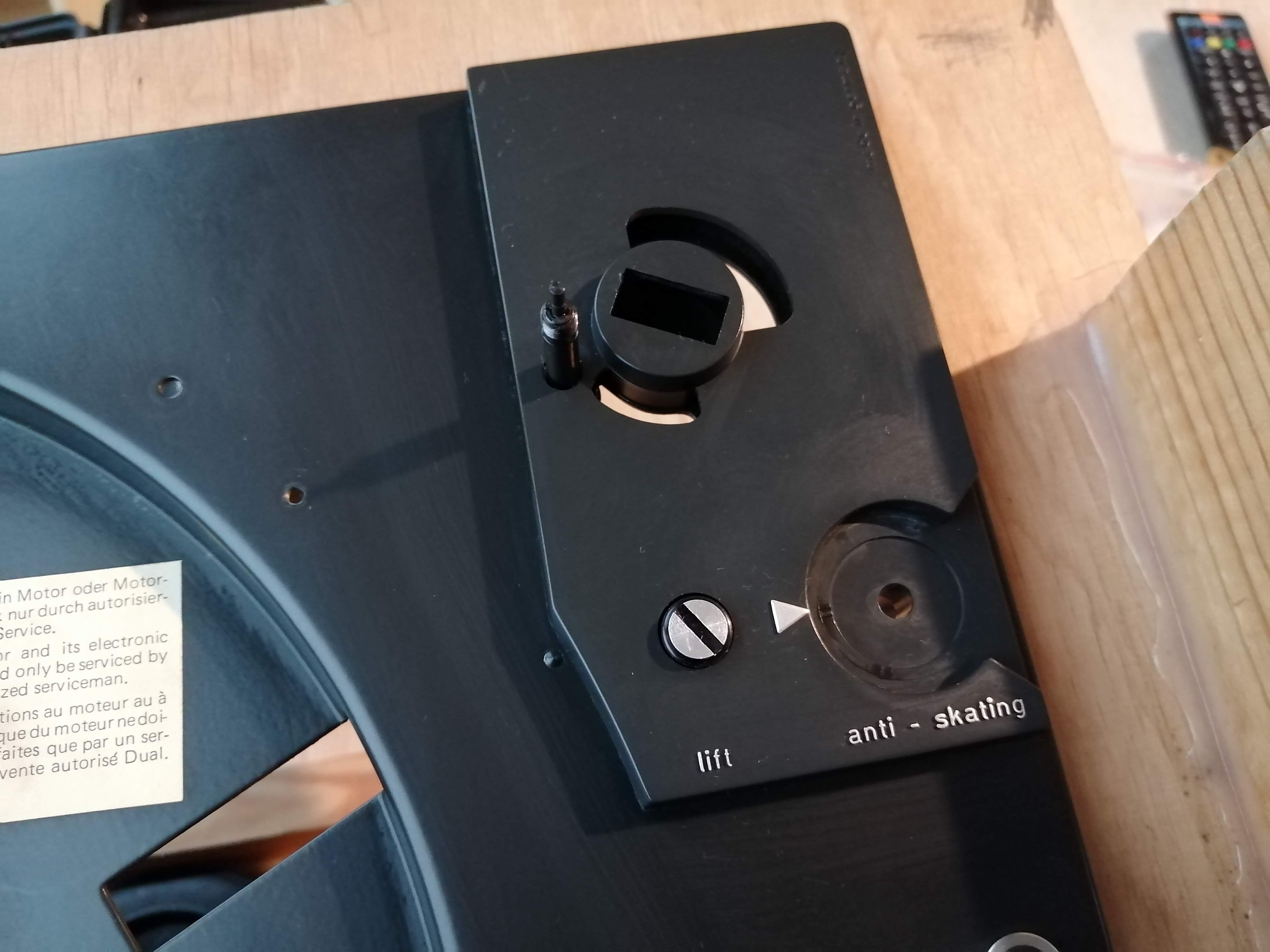 Od razu stwierdziłem postępujące uszkodzenie kółka antyskatingu, które zabezpieczyłem oraz mocny hałas z łożyska silnika/talerza. Automatykę udało się naprawić a była to kombinacja uszkodzeń, wygięć i deformacji